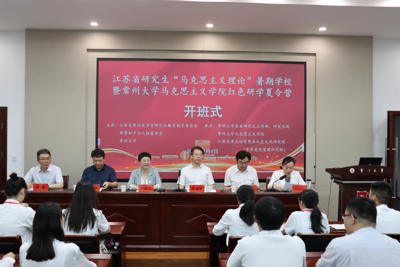 7月4日,江苏省研究生“马克思主义理论”暑期学校暨常州大学红色研学夏令营开班式在常州大学科教城校区文彰楼太雷讲堂举行。江苏省哲法史学类研究生教育指导委员会主任委员、南京邮电大学校长叶美兰,常州大学党委书记徐守坤,江苏省哲法史学类研究生教指委秘书处负责人、南京邮电大学马克思主义学院副院长朱奎泽,以及常州大学党委研究生工作部、马克思主义学院、红色文化研究院相关负责人出席开班式,暑期学校全体学员和马克思主义学院2023级研究生到场参加活动,马克思主义学院院长刘晓华主持活动。