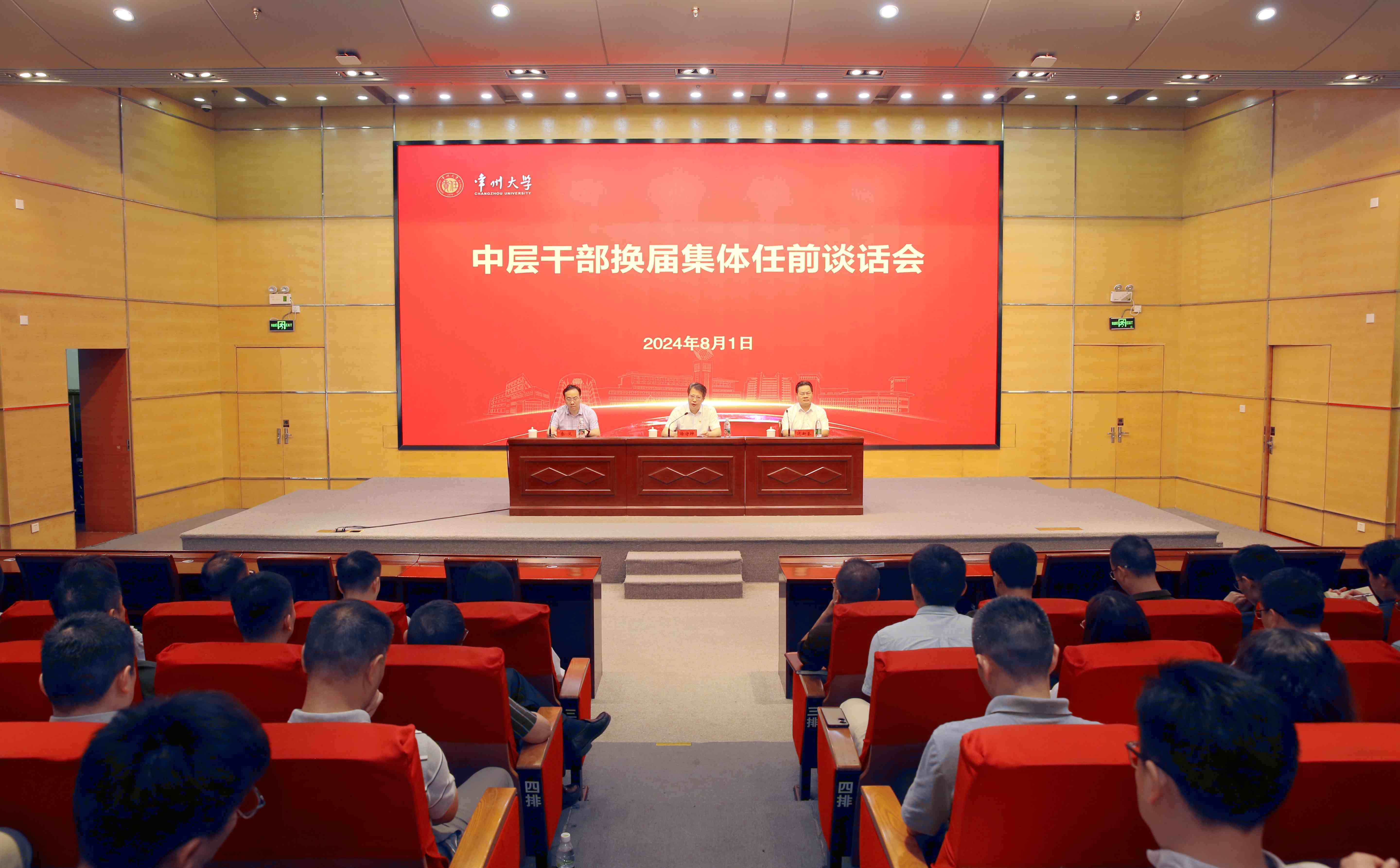 8月1日下午,学校在文彰楼报告厅召开中层干部换届集体任前谈话会。校党委书记徐守坤,党委常委、纪委书记、派驻监察专员沈新奎与新提任及交流任职干部进行集体谈话。党委常委、组织部部长秦义主持会议。