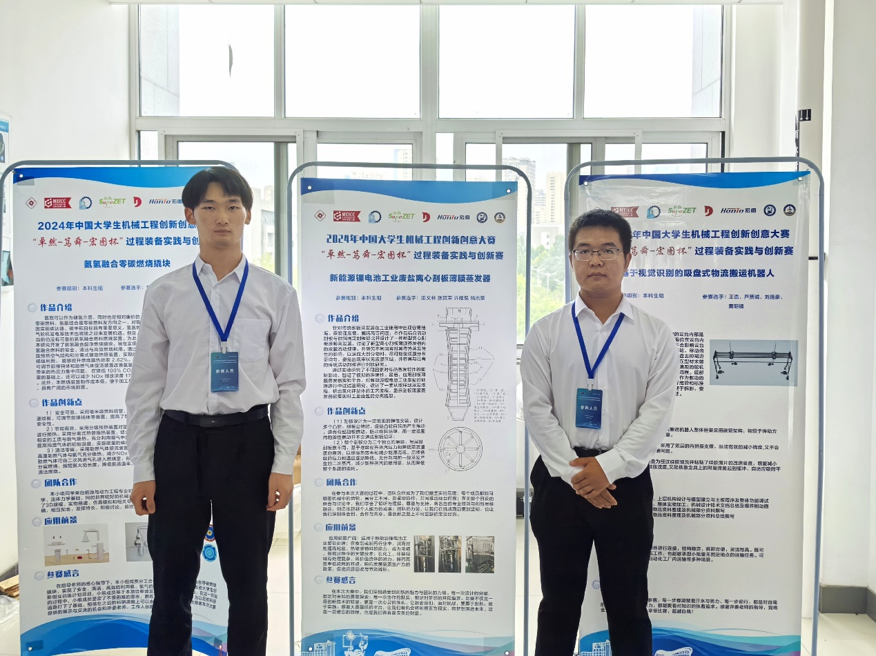 陈文林、张贺荣、许耀倪、姚杰豪的作品《新能源锂电池工业废盐离心刮板薄膜蒸发器》,陈锦哲、刘吴祥、伍秉杰、李子涵的作品《高盐垃圾渗滤液低碳绿色MVR处理设备》获本科生组一等奖。张玲、张鑫宇、黄亚斌、王祺的作品《基于双层交错仿生拟序凹槽结构的微通道热沉》获研究生组一等奖。同时,学校获二等奖4项、三等奖2项。