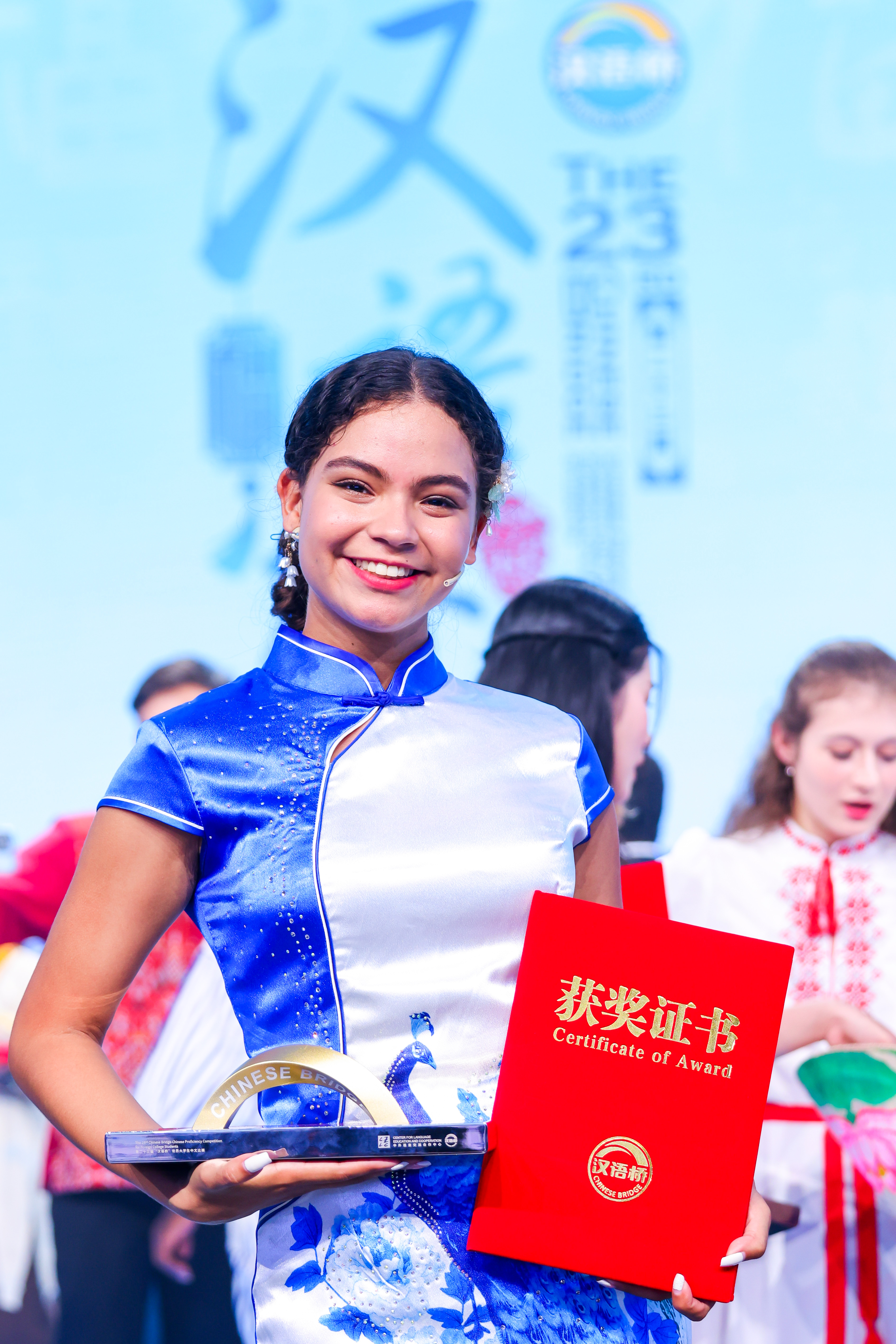 8月16日至9月2日,第二十三届“汉语桥”世界大学生中文比赛全球决赛在北京和福建两地举行。我校委内瑞拉玻利瓦尔大学孔子学院学生安黎桦经过“过桥”赛、晋级赛和总决赛的激烈角逐,力挫群雄,从来自五大洲133个国家和地区的147名总决赛选手中脱颖而出,荣获美洲洲冠军,被授予“汉语大使”荣誉称号,同时获得来华攻读学位课程的国际中文教师奖学金。
