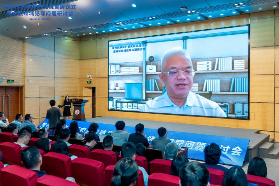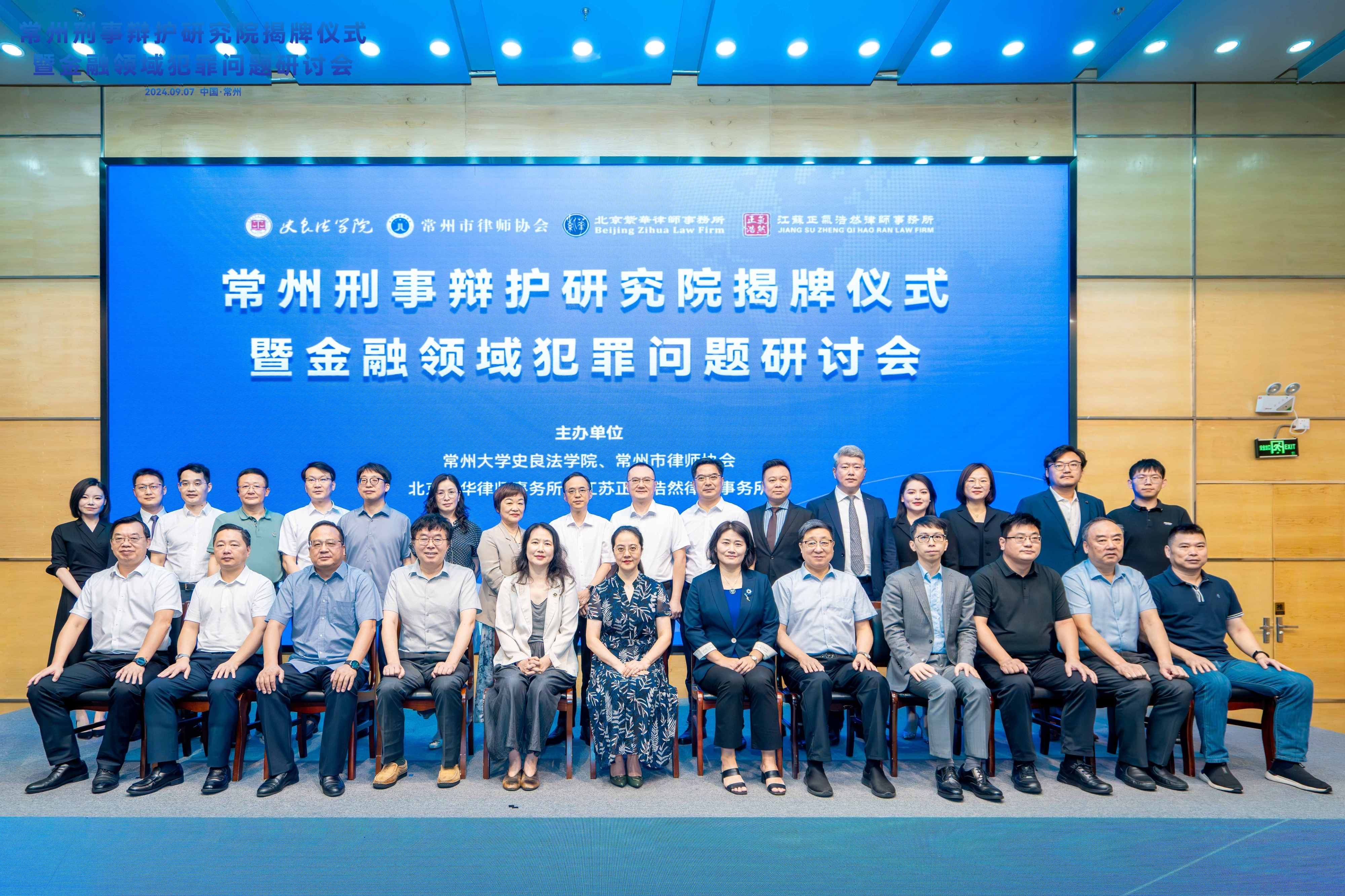 9月7日,常州刑事辩护研究院揭牌仪式暨金融领域犯罪问题研讨会在我校科教城校区文彰楼报告厅举办。本次活动由常州大学史良法学院、常州市律师协会、北京紫华律师事务所、江苏正气浩然律师事务所联合主办。我校党委常委、副校长杨琳,常州市司法局党组成员、副局长、市律师行业党委书记庾爱民、常州市人民检察院党组成员、副检察长王强,武进区司法局党组书记、局长杨红明,武进区司法局副局长、区律师行业党委书记沈隽,江苏省律师协会副会长、常州市律师协会会长章进,常州市律师行业党委专职副书记、常州市律师协会秘书长曹荣,中国行为法学会司法分会副会长、北京紫华律师事务所创始人、主任钱列阳,常州市律师协会名誉会长、江苏正气浩然律师事务所创始人、主任陆柏松,以及史良法学院负责人出席活动。