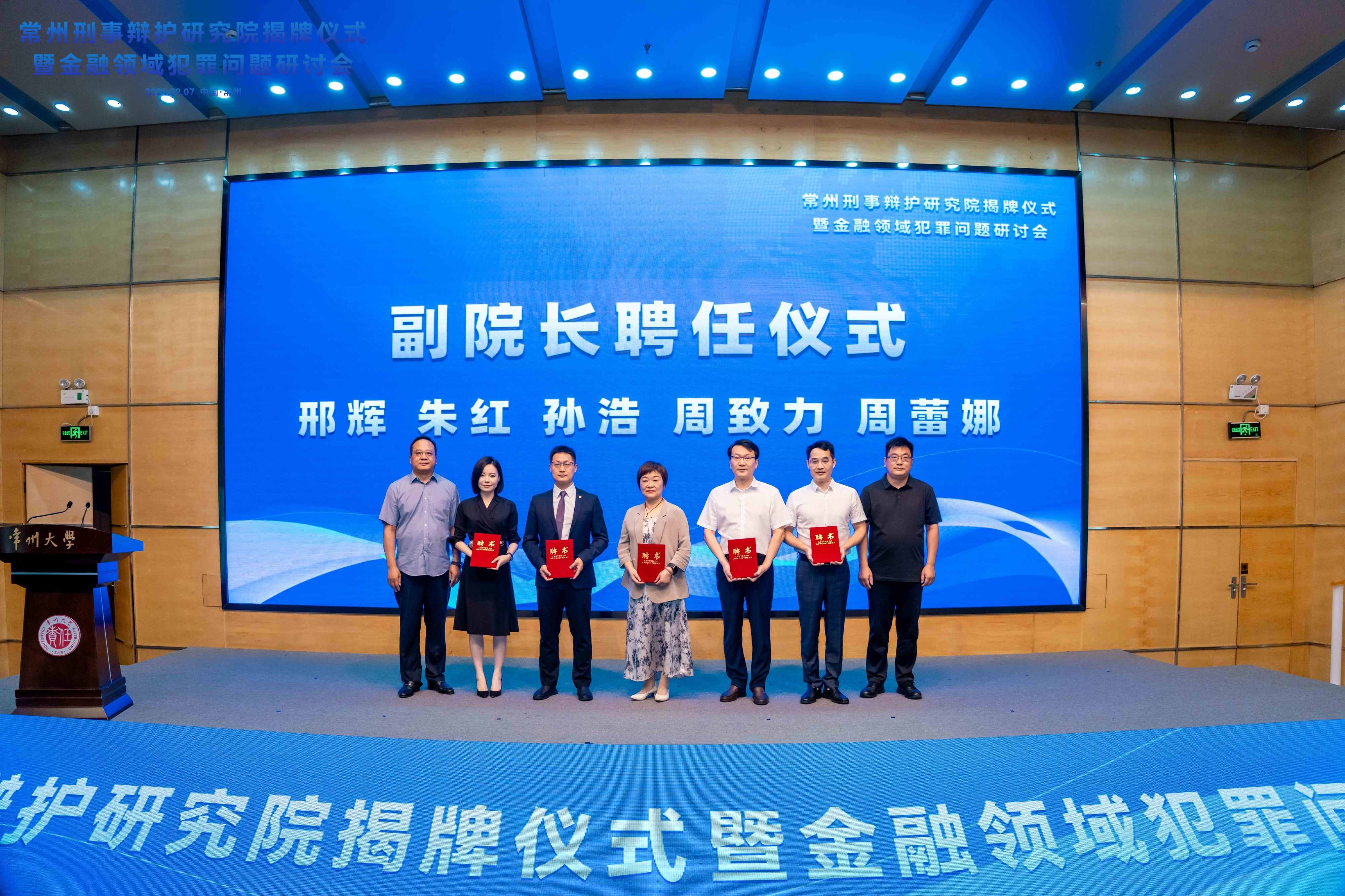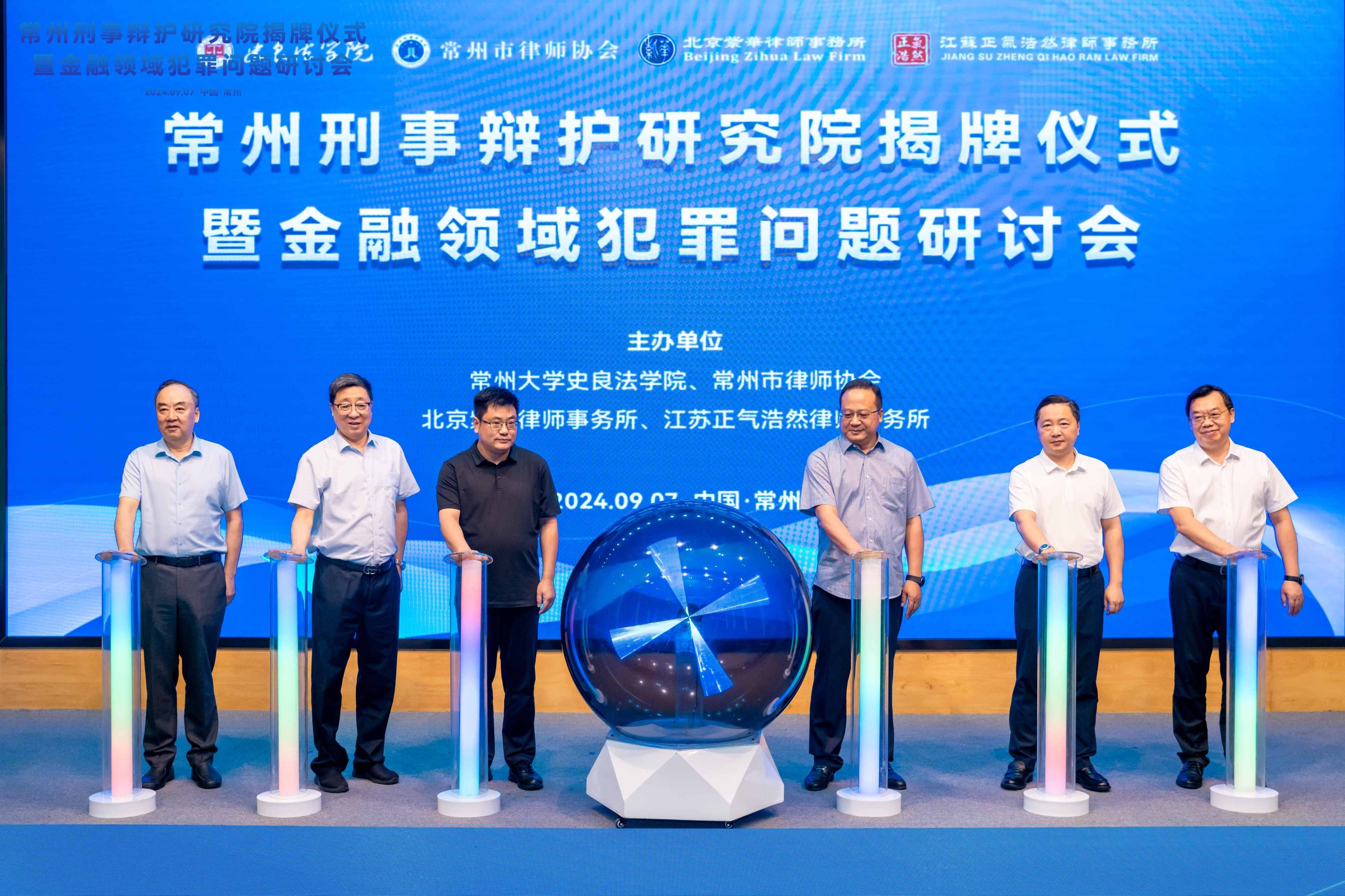 庾爱民、杨红明、章进、钱列阳、陆柏松及史良法学院负责人共同为常州刑事辩护研究院揭牌。