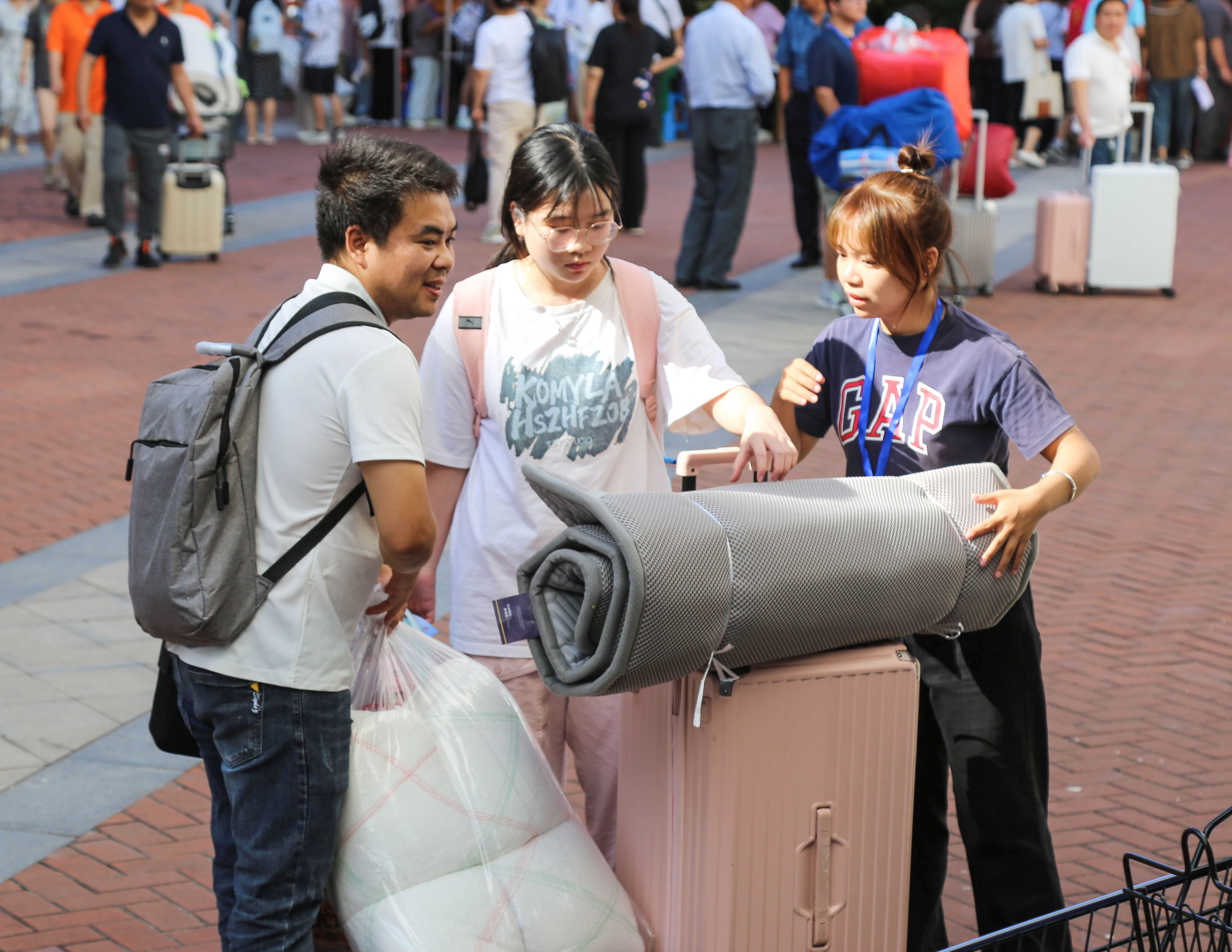 报到现场,来自各系和相关部门的工作人员耐心地回答着学生和家长提出的各种问题,力争使每位新生尽快熟悉校园环境,尽快融入全新的校园生活。学生志愿者活跃在校园各处,为新生和家长提供热情周到的咨询和服务,成为校园一道亮丽的风景线。怀德学院还开设“绿色通道”和资助政策咨询点,宣传国家和学院各项资助政策,让新生切实感受到学院的关怀与温暖。