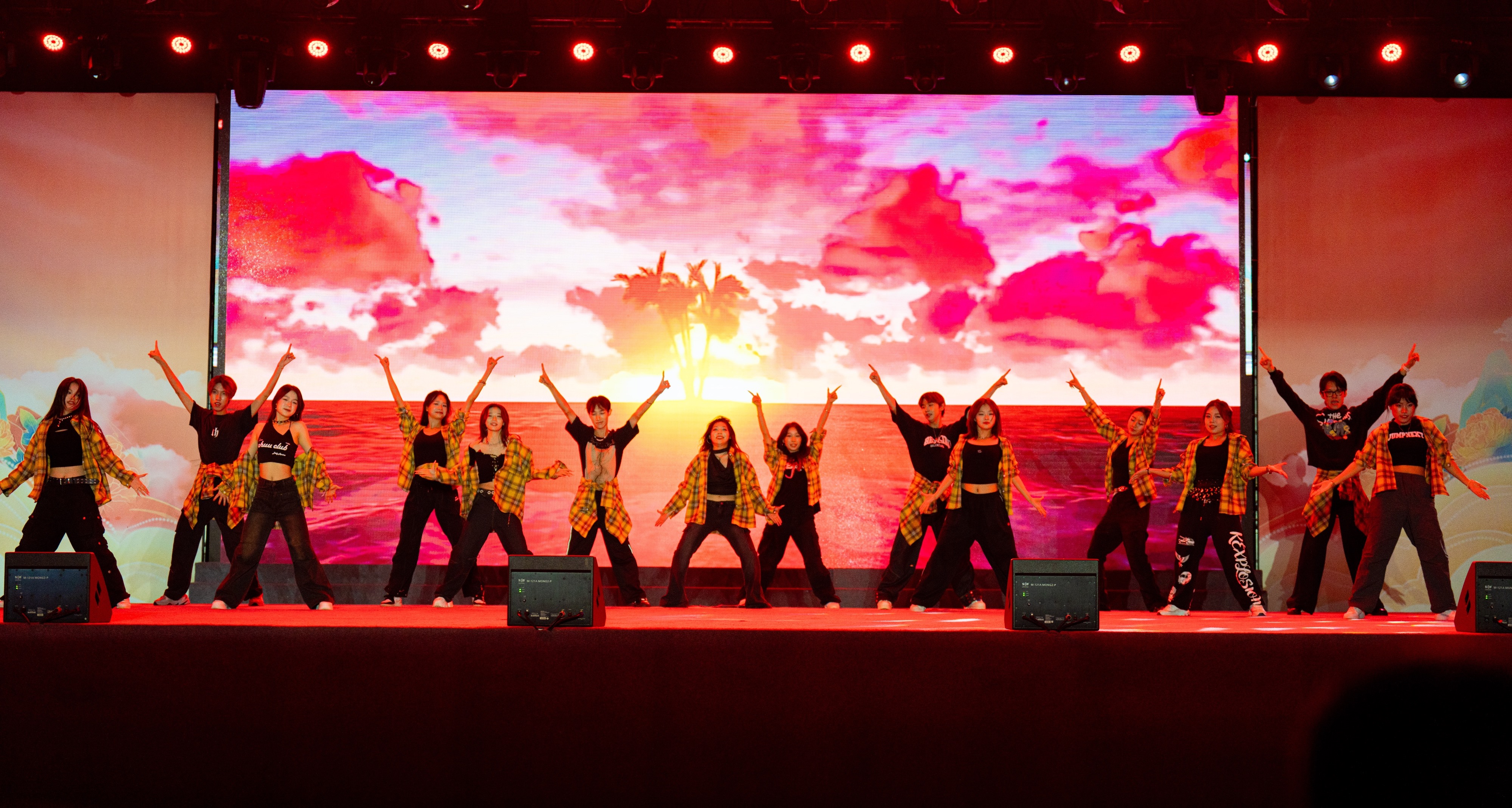 “百尺游丝争绕树,一群娇鸟共啼花”,大学生艺术团舞蹈团表演的舞蹈《唐宫夜宴》带领全场穿越千年走进大唐盛世,激励新常大青年勇立时代潮头,绽放青春最美光彩;环工212班彭艾源纵情歌唱《男孩》,引人回忆青葱岁月,鼓励新生不辜负青春,奔赴精彩未来;大数据242班戴琳娜温情演绎《下雨天》,引导青年要在关键的十字路口,拨开迷雾勇往向前;储运221班尚晋如带来《我在人民广场吃炸鸡》,引起现场观众纷纷跟唱,会场气氛不断升温;伴随《Waka Waka》的欢快旋律,海外留学生进行风采展示,传递人类命运共同体的青春力量;街舞联盟带来的街舞串烧《青春主打歌》活力四射、引爆全场,将会场气氛推向高潮。