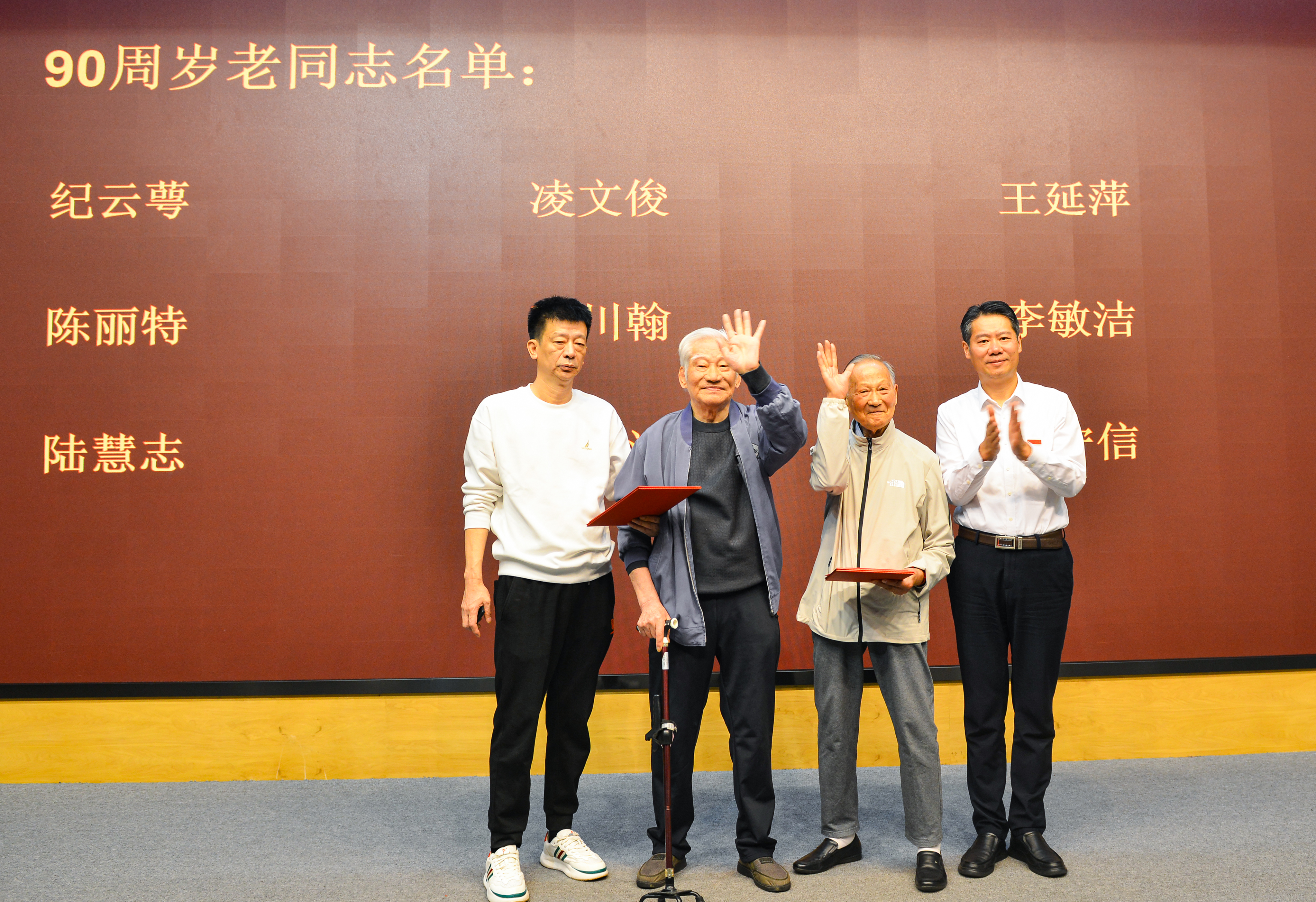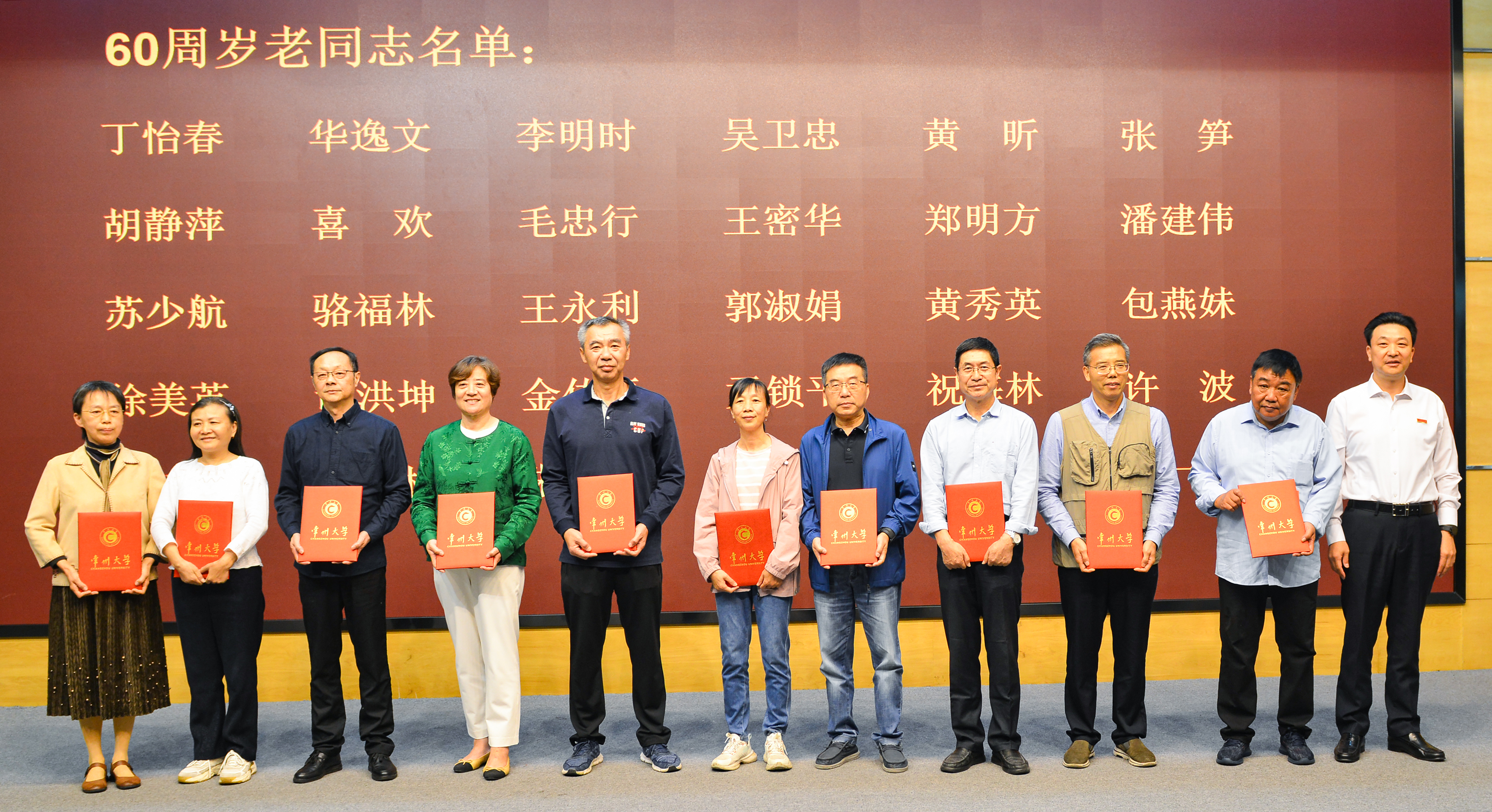 联欢会为今年60、70、80、90周岁的老寿星集体祝寿,为今年结婚30、40、50、70周年的离退休教职工夫妇送上祝福。
