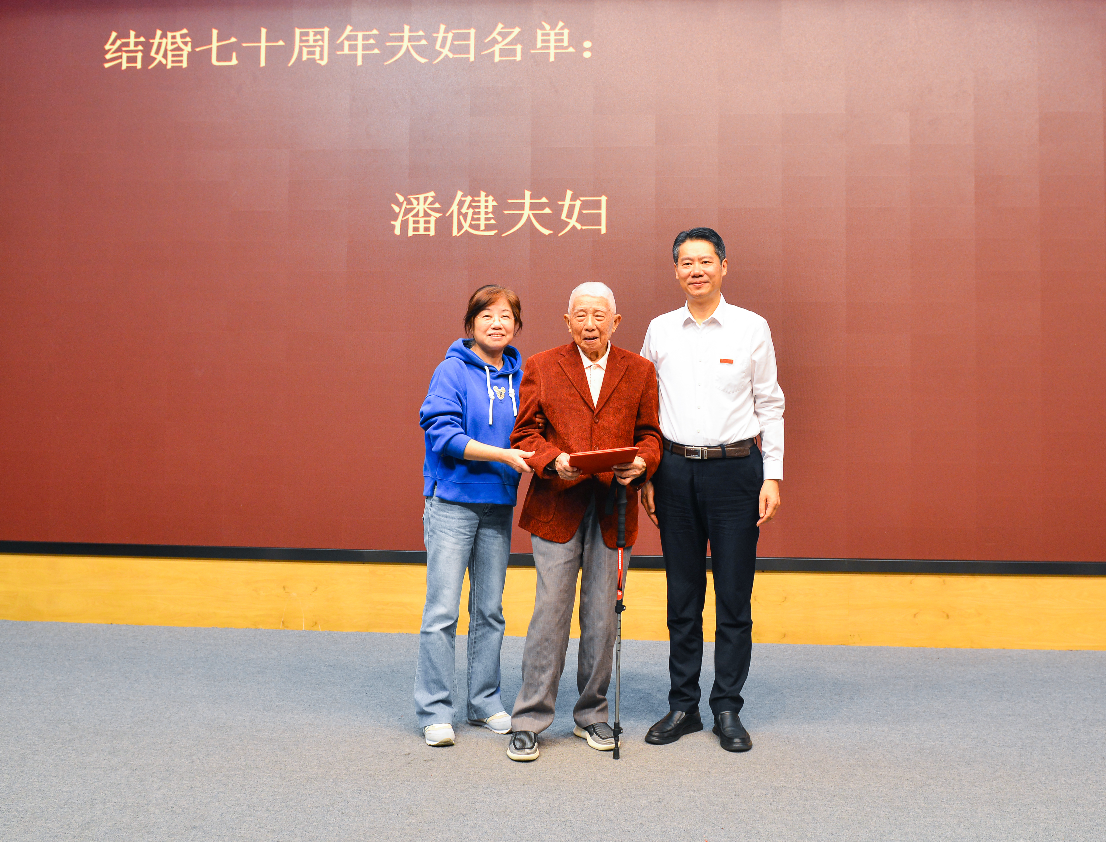 校领导为今年结婚30、40、50、70周年的离退休教职工夫妇送上祝福