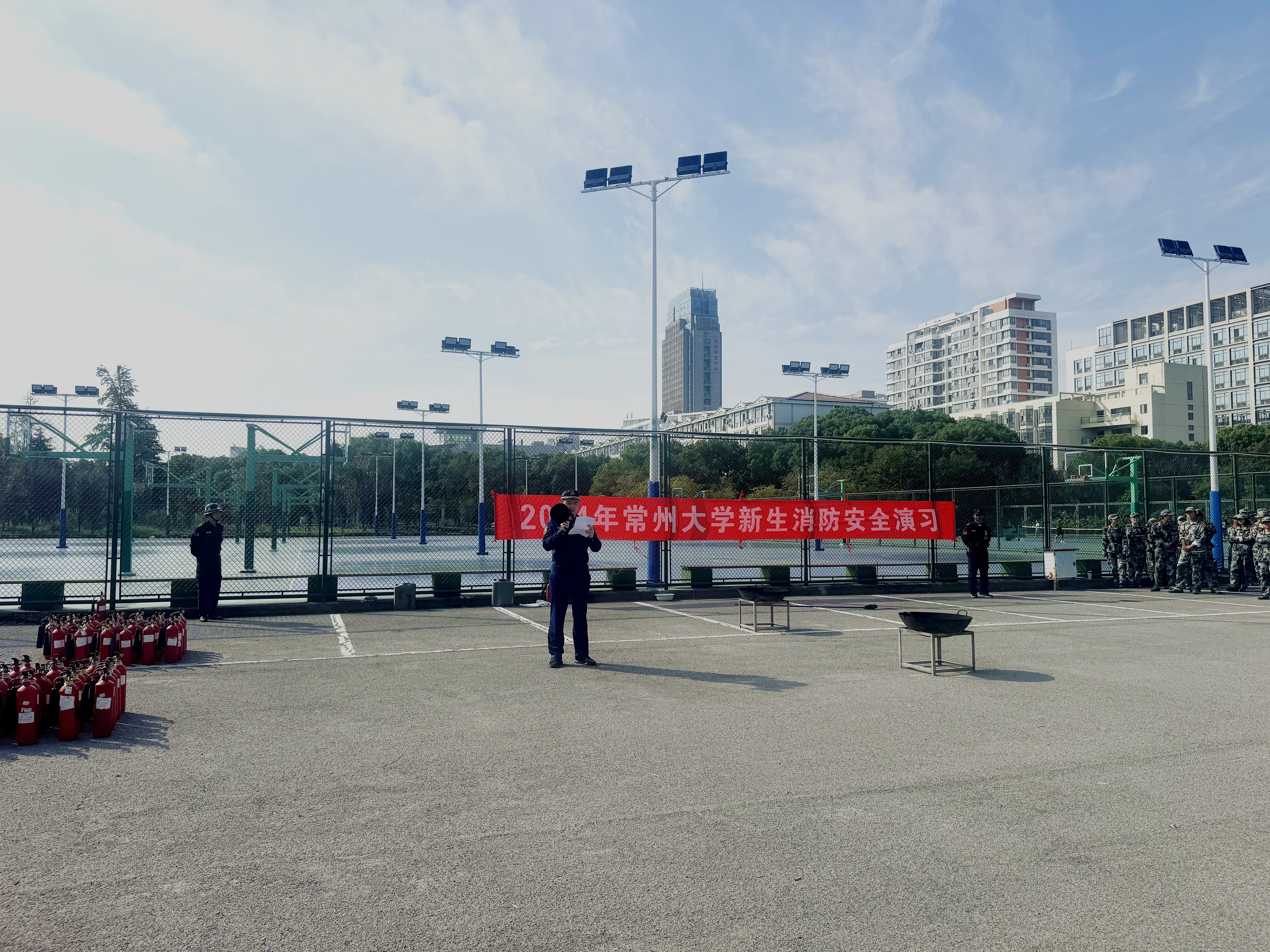 为增强新生消防安全意识,增强火灾突发事件应急处置能力,掌握消防常识和火场逃生、自救方法,10月18日下午,学生工作处和安全保卫处在科教城校区体育看台西侧组织举行消防知识培训和灭火演练。相关学院2024级新生参加演练活动。
