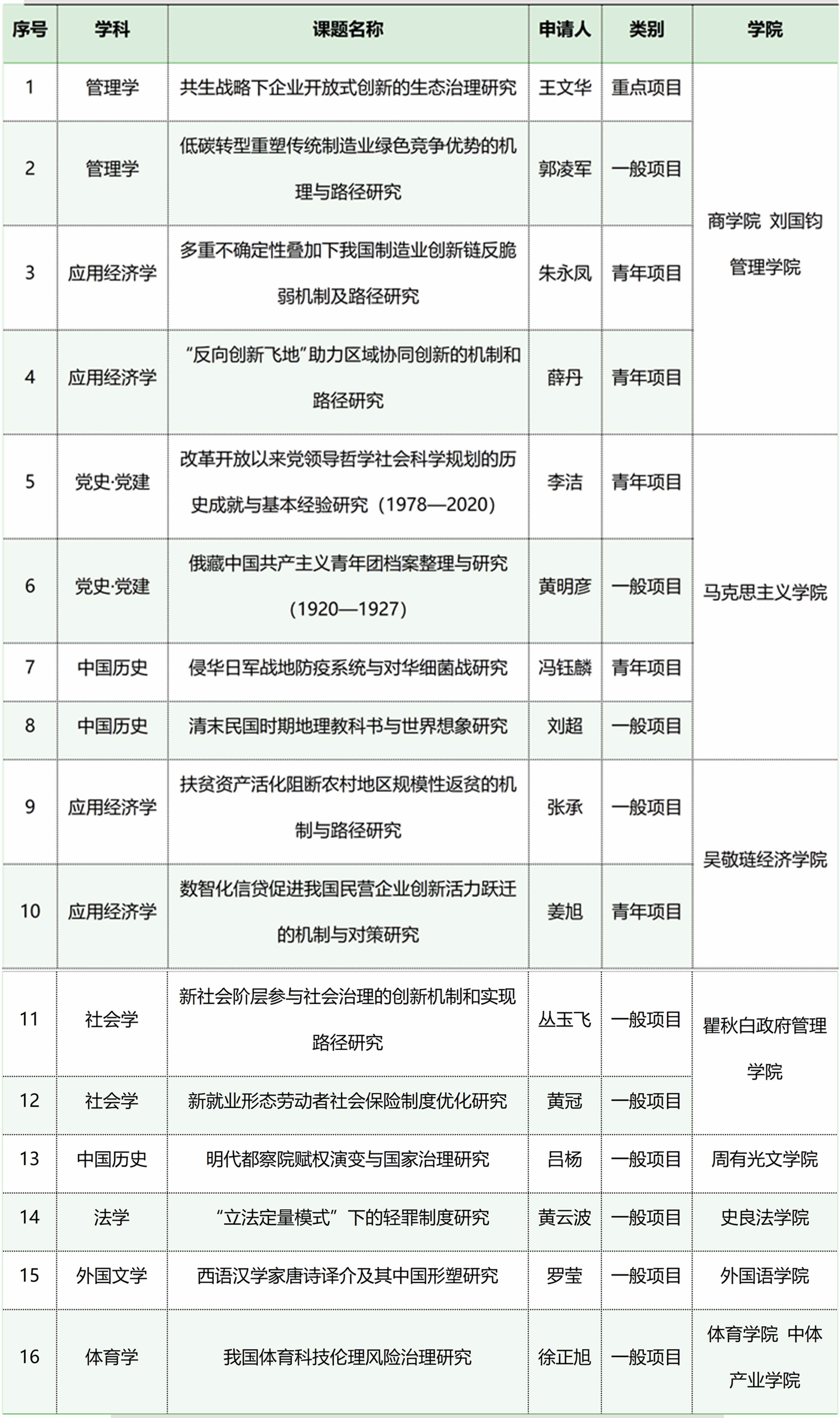 近日,全国哲学社会科学工作办公室正式公布了2024年国家社会科学基金年度项目评审结果。我校共计16项喜获立项,含1项重点项目、10项一般项目和5项青年项目。