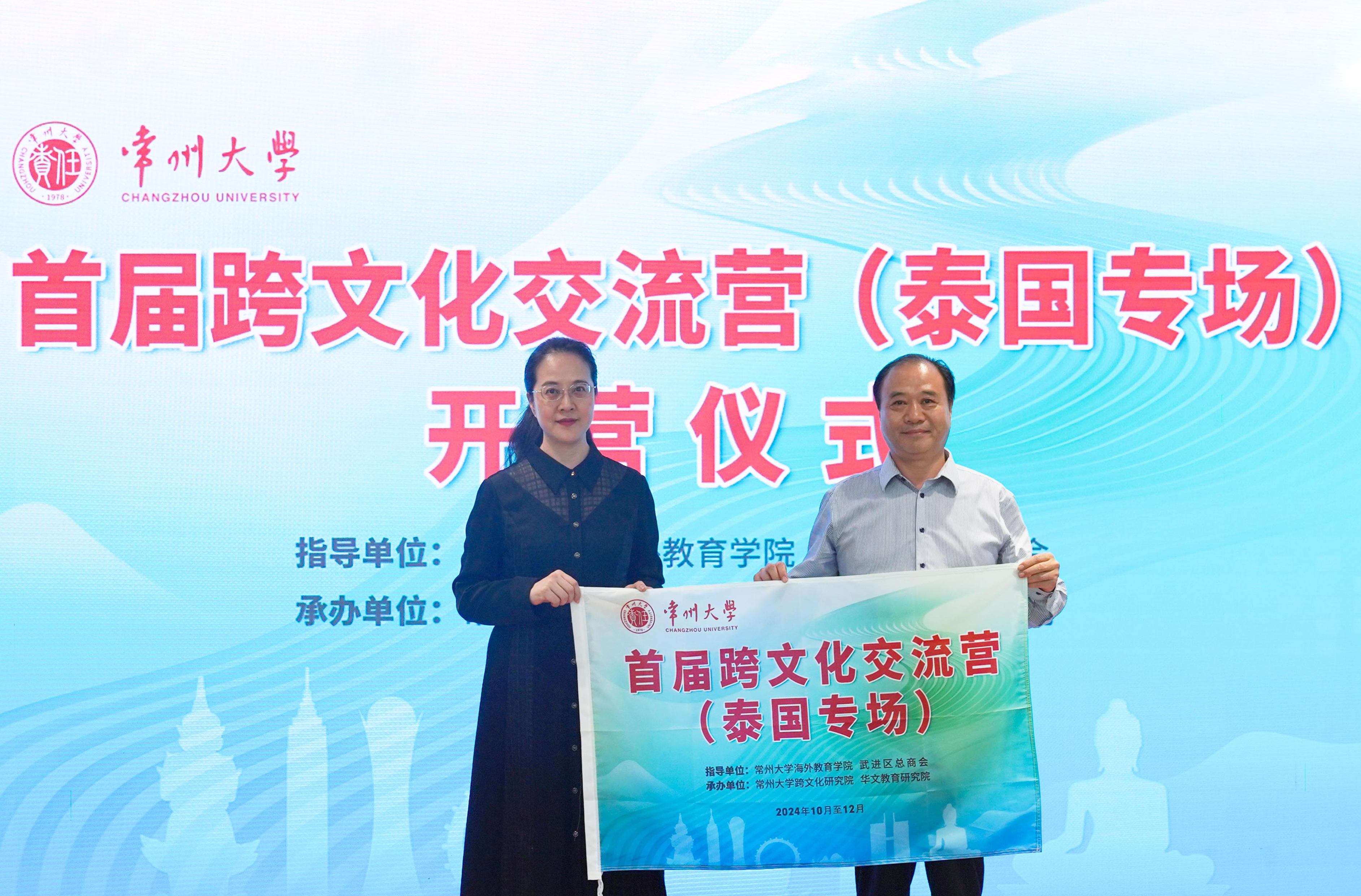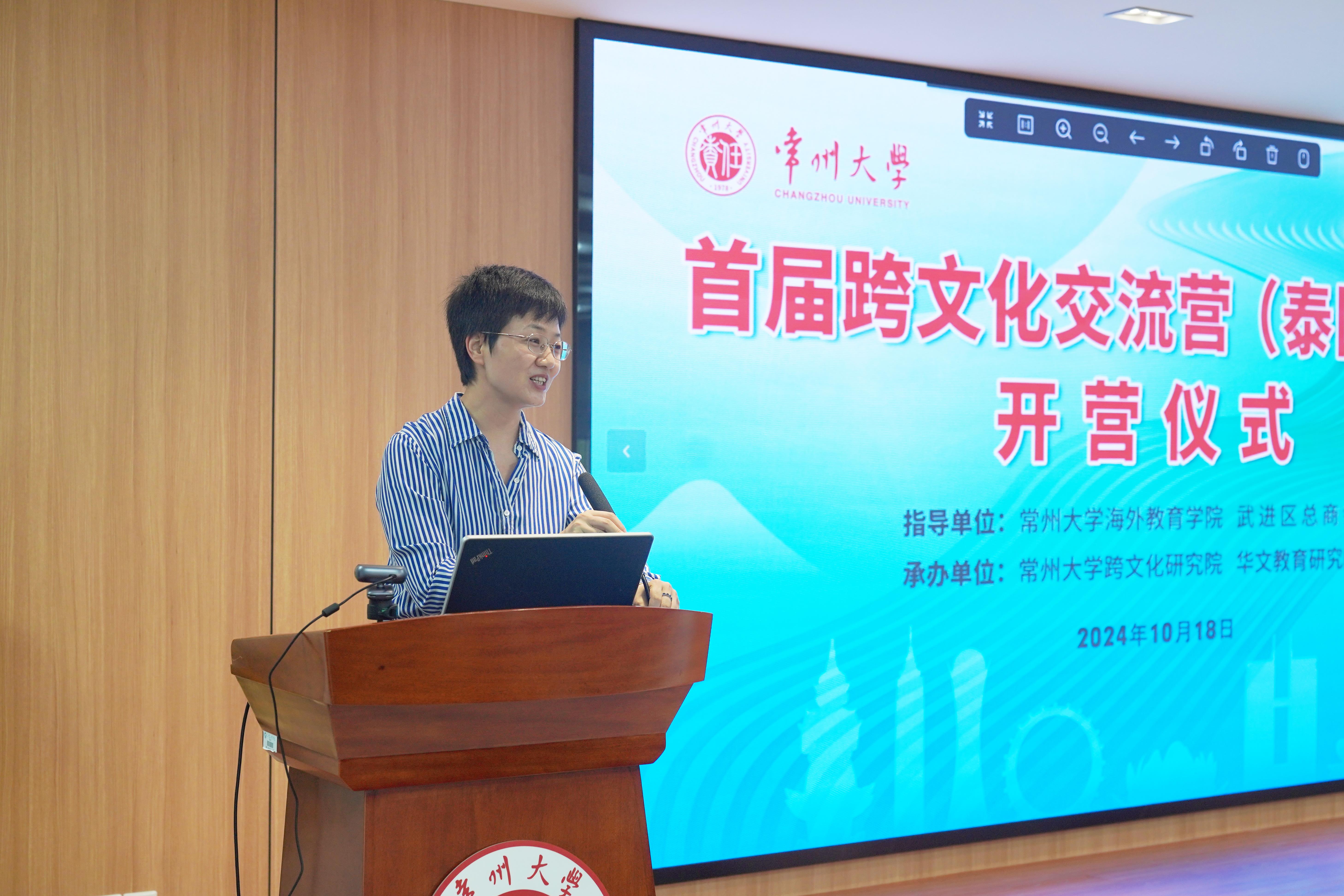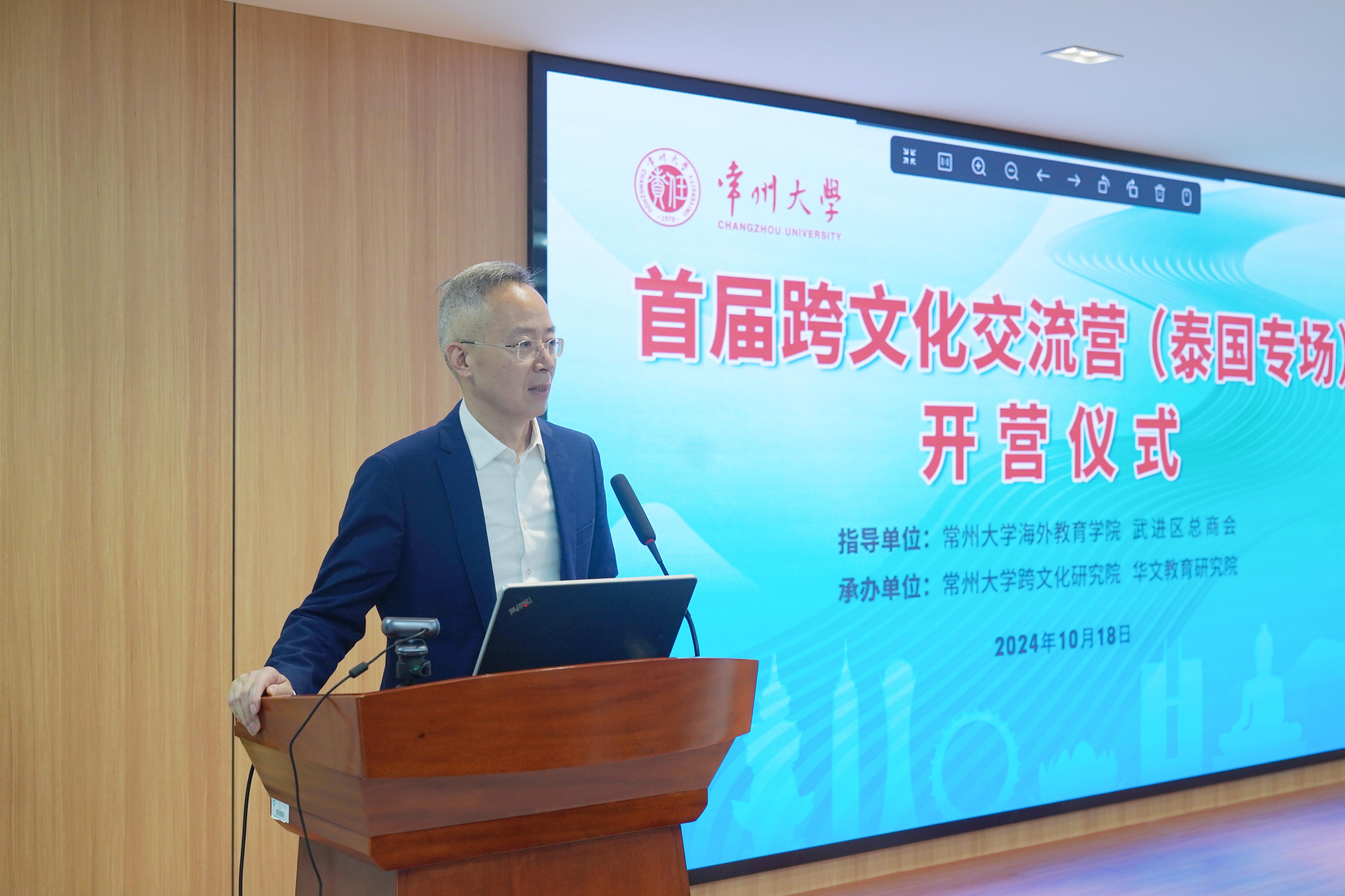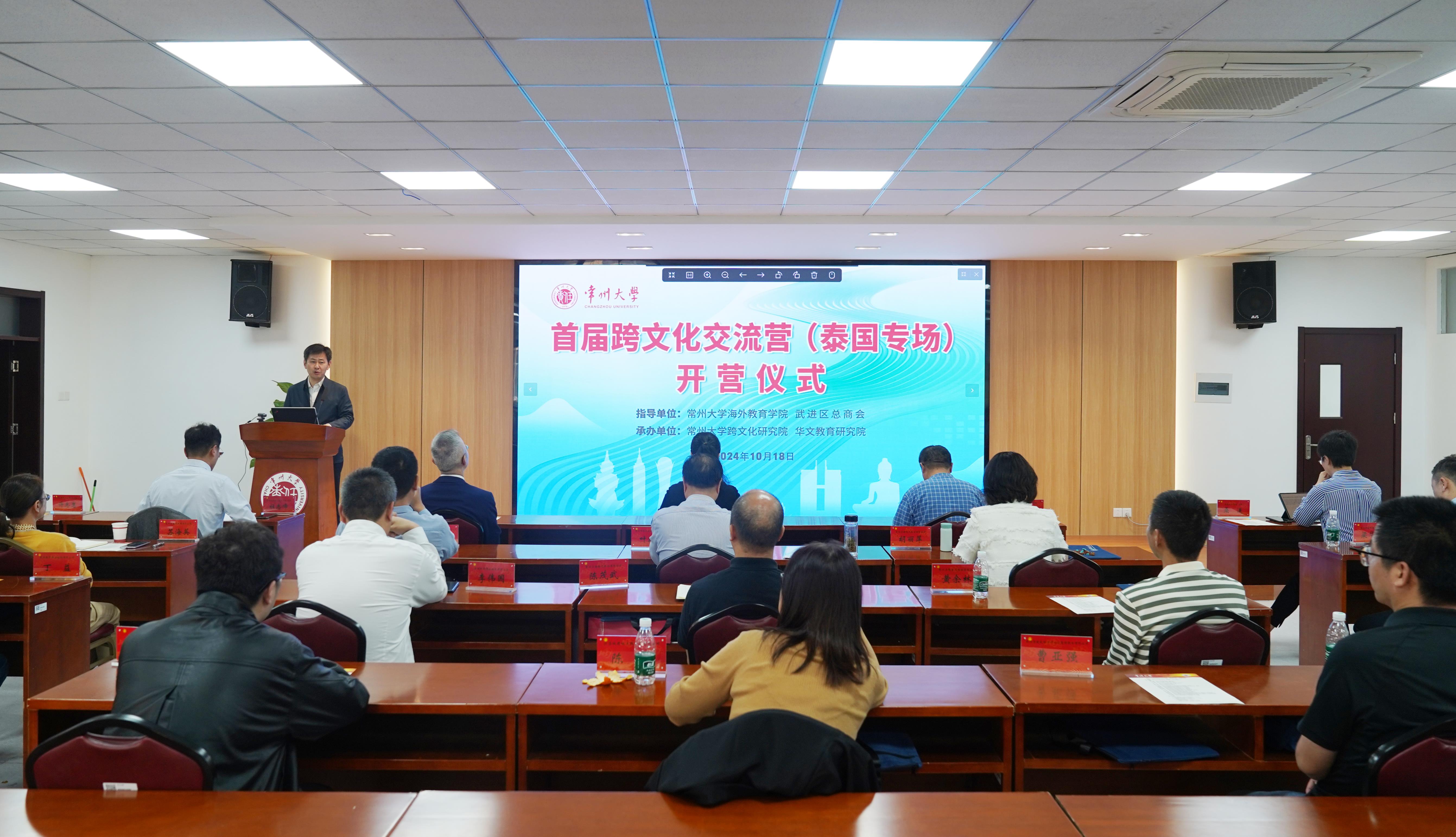 10月18日,常州大学首届跨文化交流营(泰国专场)开营仪式在科教城校区文约楼多功能厅举行。常州市外办副主任沈炼、武进区工商联主席桑遥、北京大学泰语系教授薄文泽,常州大学党委常委、副校长杨琳,海外教育学院、跨文化研究院负责人和常州市15位企业家出席开营仪式。