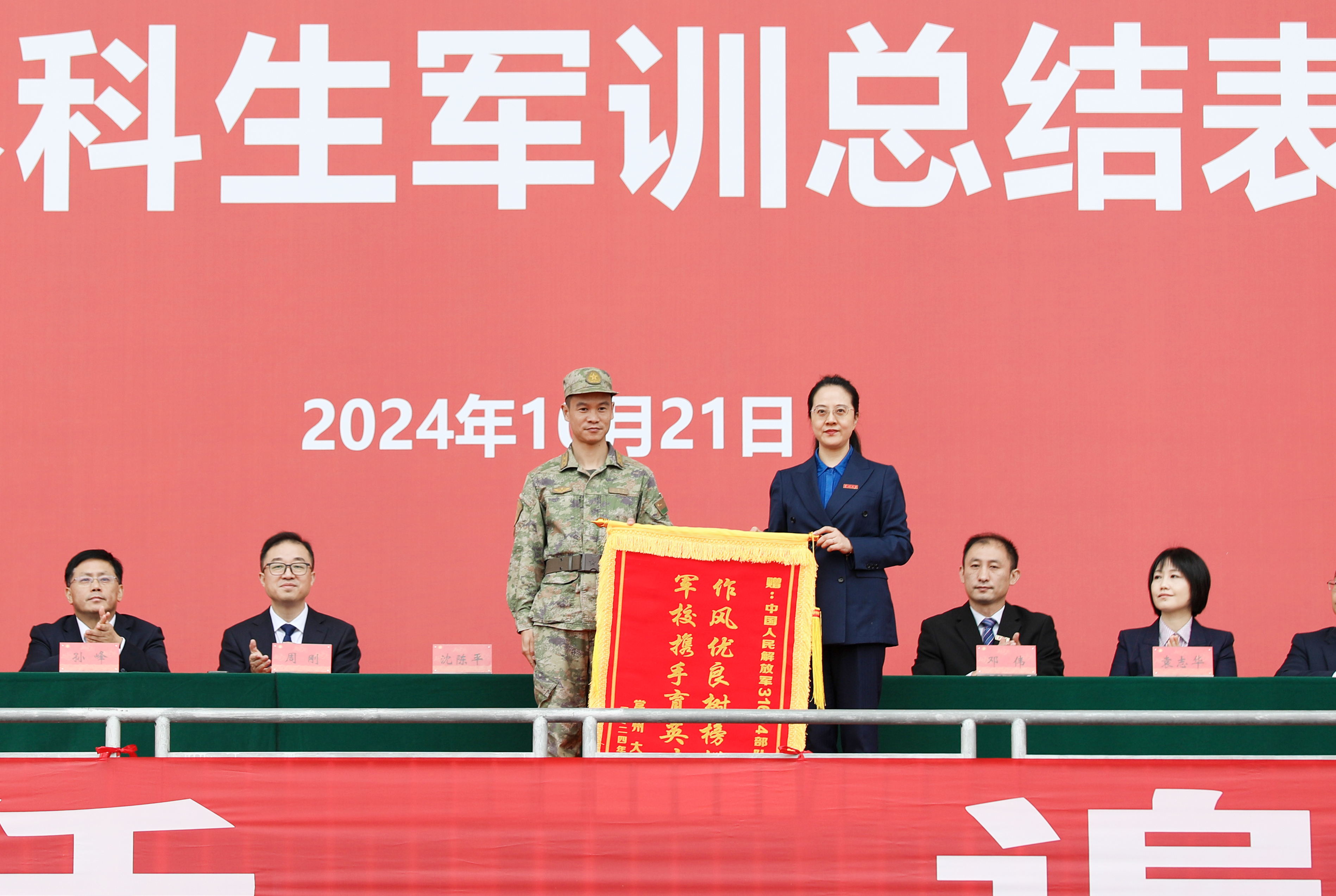 10月21日上午,学校2024级本科生军训总结表彰大会在科教城校区、西太湖校区同时举行。党委副书记黄海燕,党委常委、副校长杨琳,党委常委、副校长周刚,党委常委、副校长彭明国,党委常委、副校长李亚飞,党委常委、宣传部部长薛冰,承训某部队负责人出席大会。相关职能部门负责人,各学院党委(党总支)书记、学工负责人,2024级本科生辅导员和全体2024级本科生参加总结表彰大会。党委人民武装部相关负责同志主持大会。