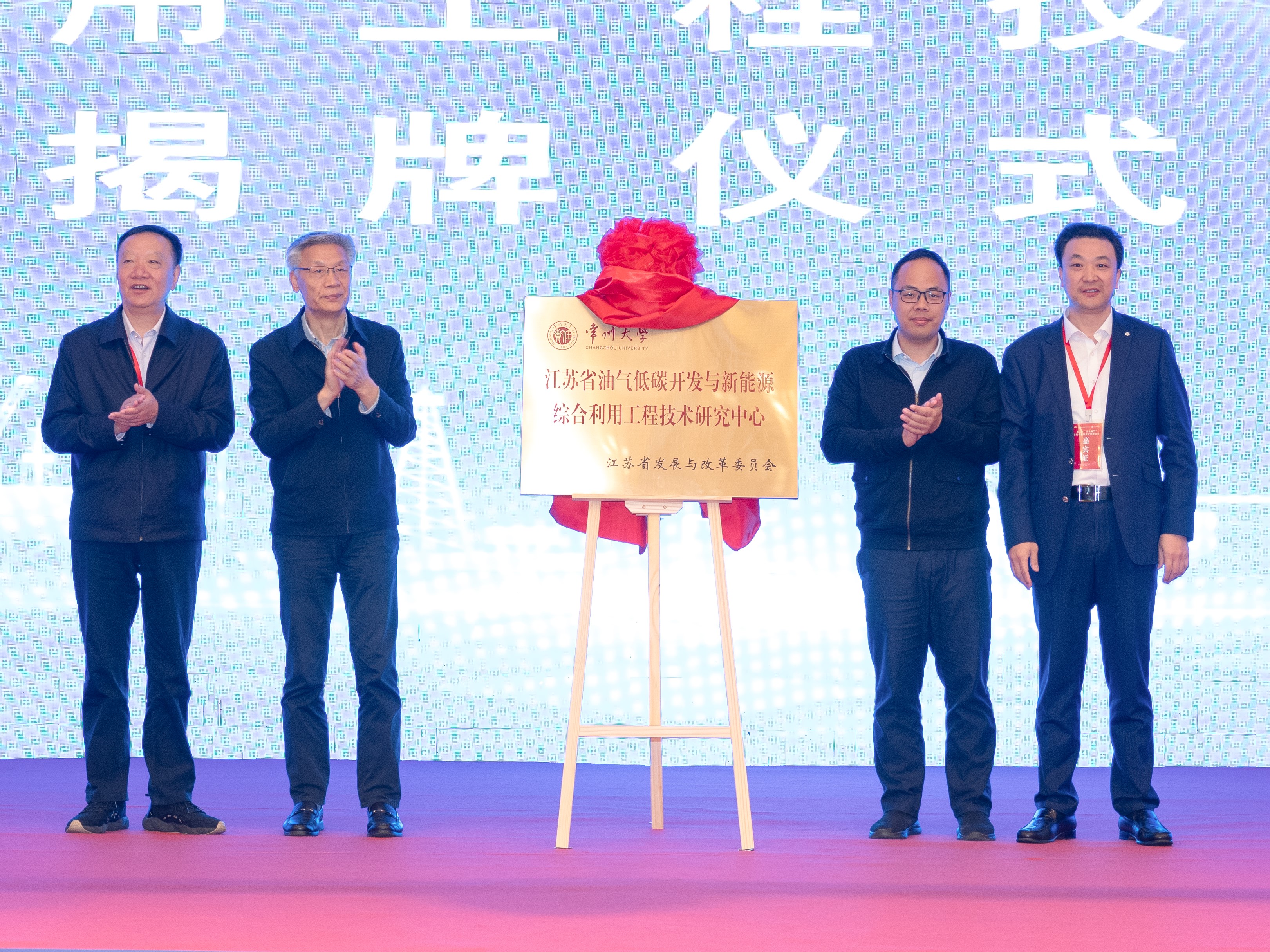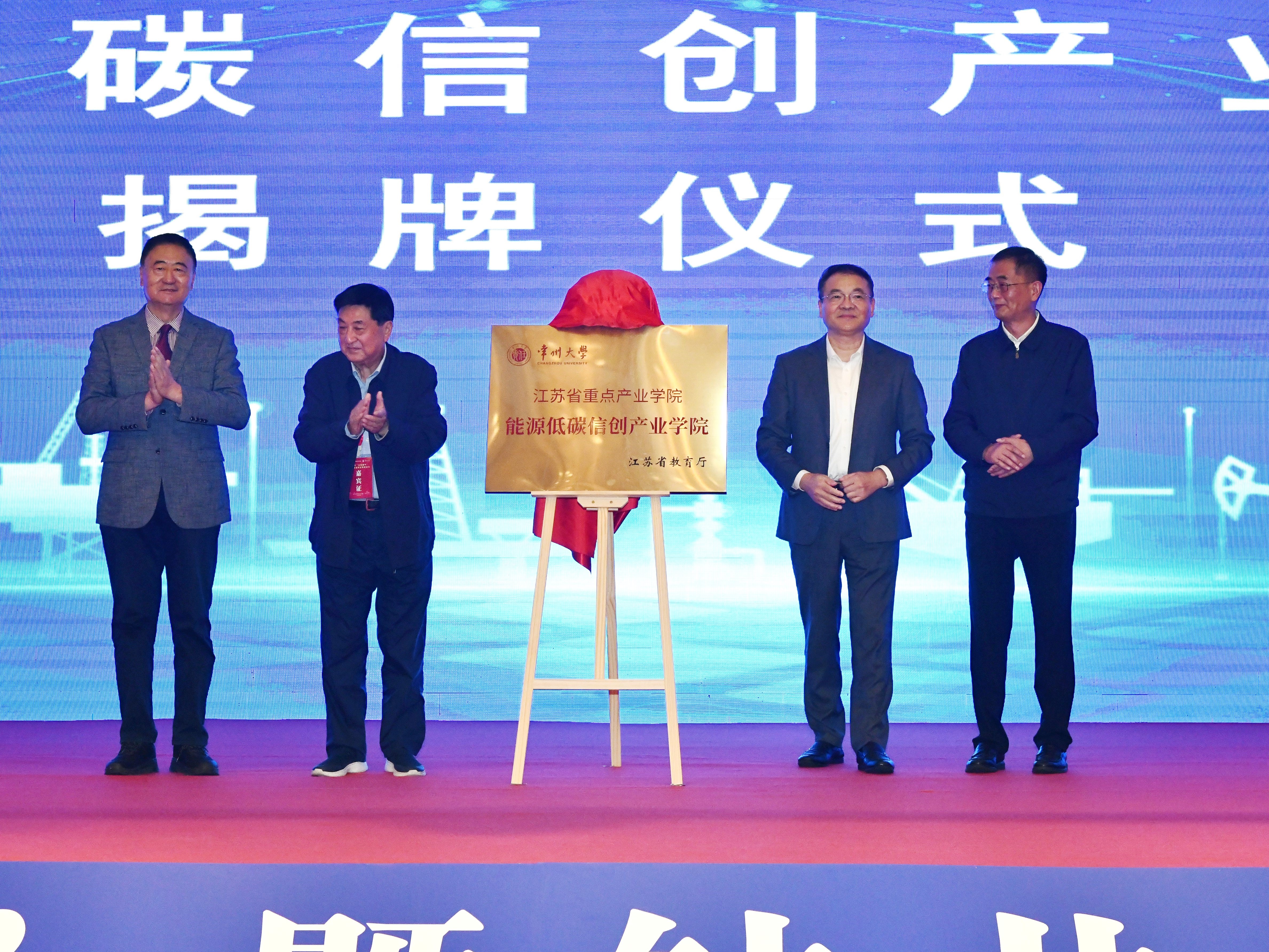 活动中,领导专家为“江苏省重点产业学院—能源低碳信创产业学院”“江苏省油气低碳开发与新能源综合利用工程技术中心”揭牌。