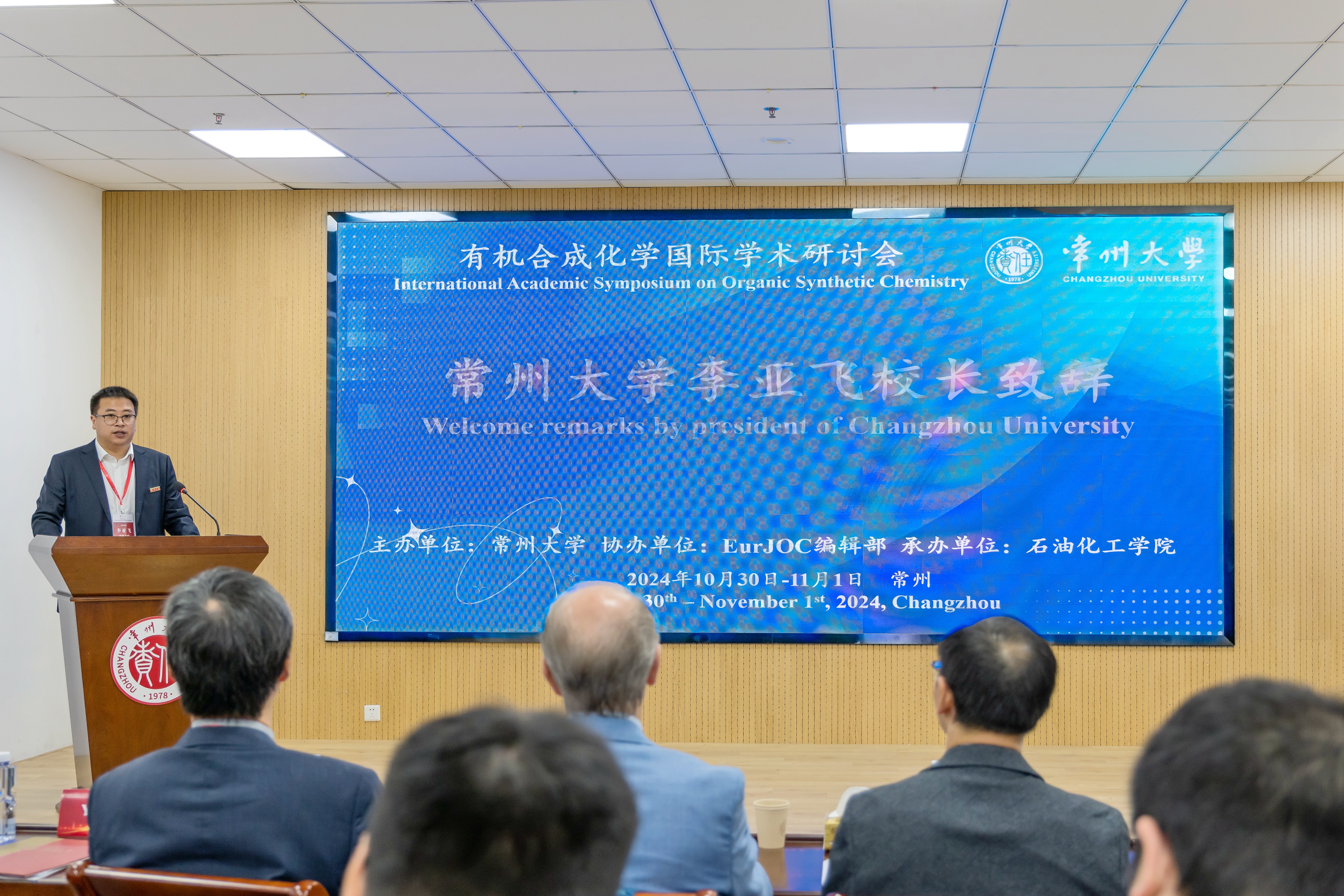 开幕式上,李亚飞致欢迎辞,他介绍了常州大学的发展概况,并重点介绍了常州大学有机化学学科的发展情况和师资队伍建设。他希望与会专家能为学校有机化学学科建设发展提出宝贵意见和建议。