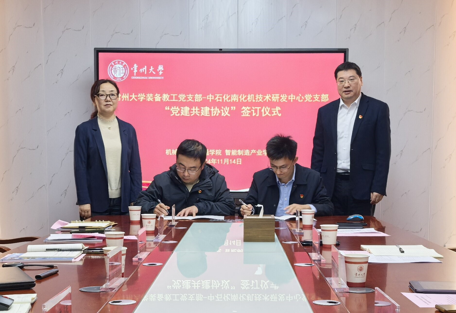 11月14日上午,机械与轨道交通学院 智能制造产业学院与中石化南京化工机械有限公司(以下简称“南化机”)举行党建共建与技术联合攻关交流活动。中石化南化公司高级专家韩冰、研发中心党支部副书记段亮、技术研发中心副经理胡兴杰、技术研发中心副主任涂克景、科研助理郝艺婷,机械与轨道交通学院 智能制造产业学院党委书记袁志华、龙城实验室-常州大学工业母机工程研究院院长长刘雪东、以及装备教工党支部党员参加活动。