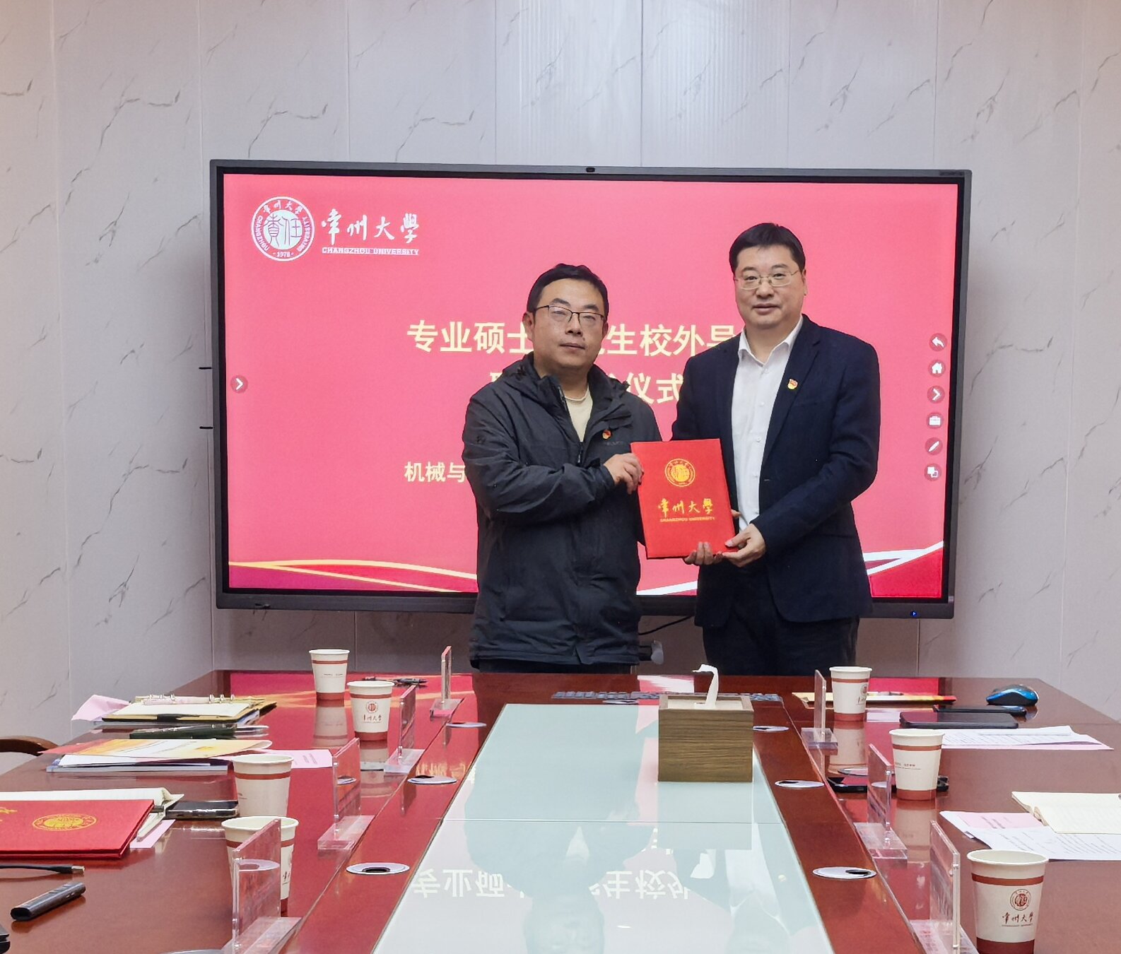 在韩冰与袁志华的共同见证下,南化机技术研发中心党支部与装备教工党支部签订了党建共建协议,袁志华为南化机专家韩冰、段亮、胡兴杰颁发专业硕士研究生校外导师聘书。随后,双方围绕技术需求开展了深入交流,南化机专家参观了机械学院实验中心。