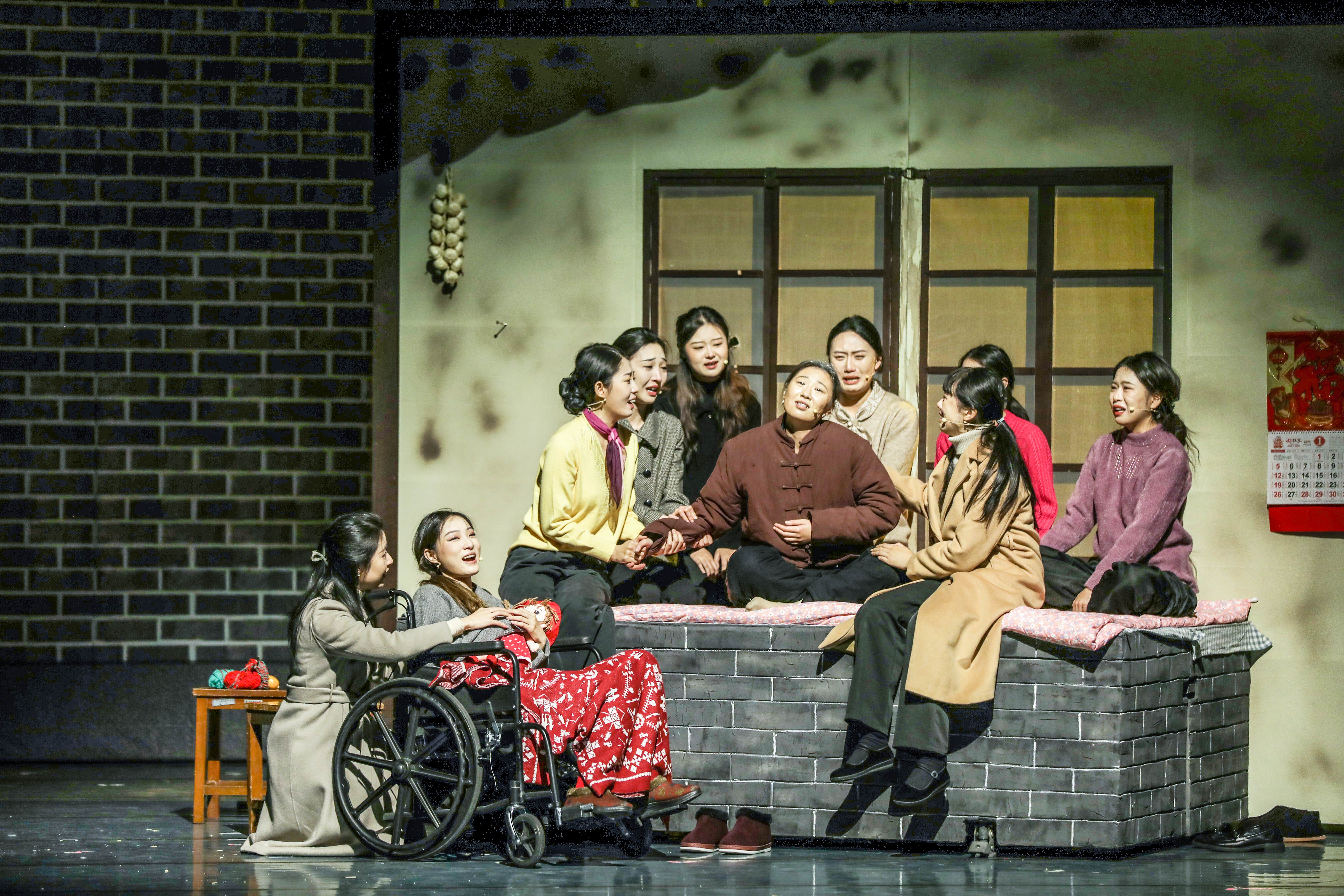 毕业大戏《家有九凤》根据作家高满堂同名小说改编,由表演211班全体同学参与演出。故事主要讲述了听雨楼里,初家老太太含辛茹苦拉扯着九个女儿,从文革末期到改革开放,一个普通家庭近二十年间的真实生活状况和心路历程。全剧除了温馨感人的亲情之外,时代变迁也被融入其中。