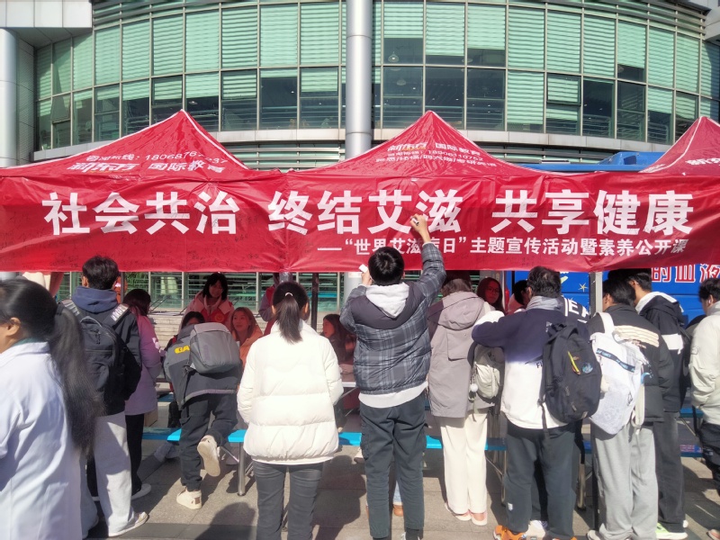 12月1日是第37个“世界艾滋病日”,为进一步落实《江苏省艾滋病防治知识传播校园行活动方案》,推广和普及艾滋病防治知识,引导学生充分认识艾滋病的危害,了解艾滋病传播途径和预防措施,11月29日,常州市疾控中心联合常州大学医学与健康工程学院、后勤管理处医保中心,在科教城校区水月广场共同开展了以“社会共治,终结艾滋,共享健康”为主题的艾滋病宣传活动。