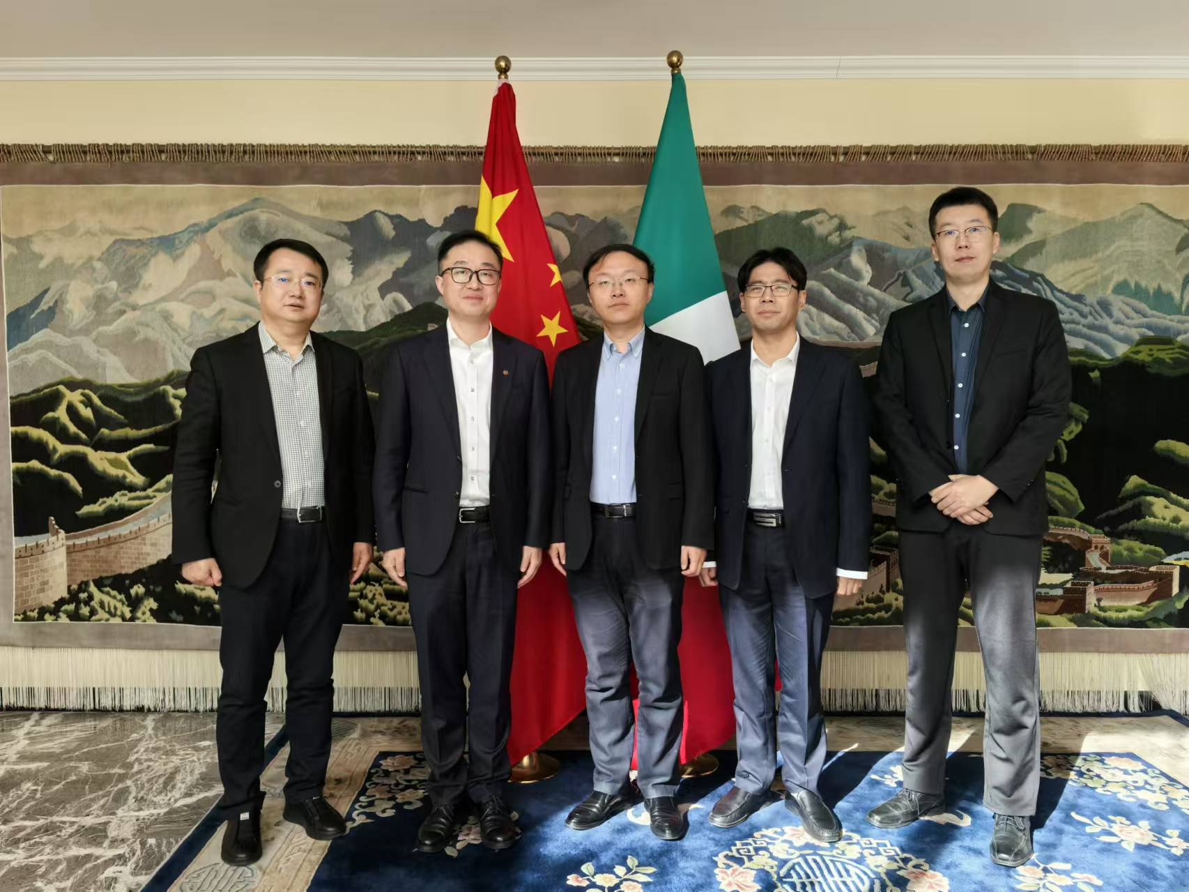 拜访中国驻墨西哥大使馆期间,参赞曹航和祁洪彬会见了我校代表团。周刚介绍了常州大学的基本情况,并汇报了与韦拉克鲁斯大学孔子学院建设规划和发展思路,对大使馆在孔院建设过程中给予的大力支持表示感谢。曹航表示,墨西哥是中国在拉美地区的重要伙伴,大使馆愿意为我校在墨西哥孔院的发展提供支持和帮助,希望常州大学以特色中文教育、文化学术交流为纽带,推动中墨两国的深度合作。