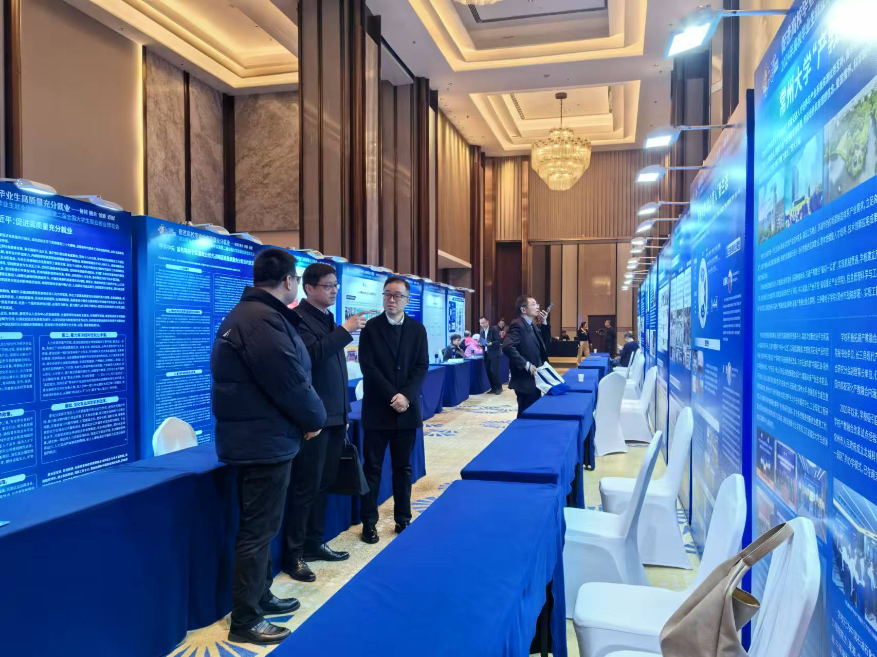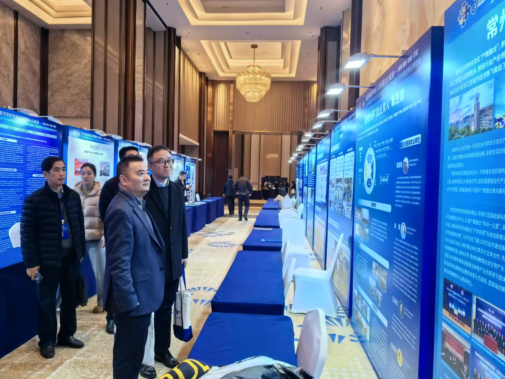 在开幕式环节,第十一届全国人大常委会副委员长陈至立致贺信,教育部原副部长、国家总督学顾问张天保讲话,教育部学生服务与素质发展中心副主任方伟等代表致辞。在启动仪式上,周刚与协会常务副会长兼秘书长、全国高校就指委副主任委员、原全国高等学校学生信息咨询与就业指导中心主任张凤有等共同启动2025届高校毕业生“就有位来”系列招聘会。学校在就业创业博览参展区设置展台,全面展示了常州大学在探索就业育人“新生态”、深化产教融合“促进业”等方面的重点举措与突出成效。教育部学生服务与素质发展中心副主任方伟、江苏省高校招生就业指导服务中心副主任黄炜等到展位指导工作,对学校近年来在深化产教融合、提高就业质量等方面取得的成就给予了充分肯定。相关兄弟院校及参会代表到展位前参观交流,40余位参会院校就业工作代表入校参观,进一步了解学校产教融合人才培养模式,交流“就业育人”做法成效。