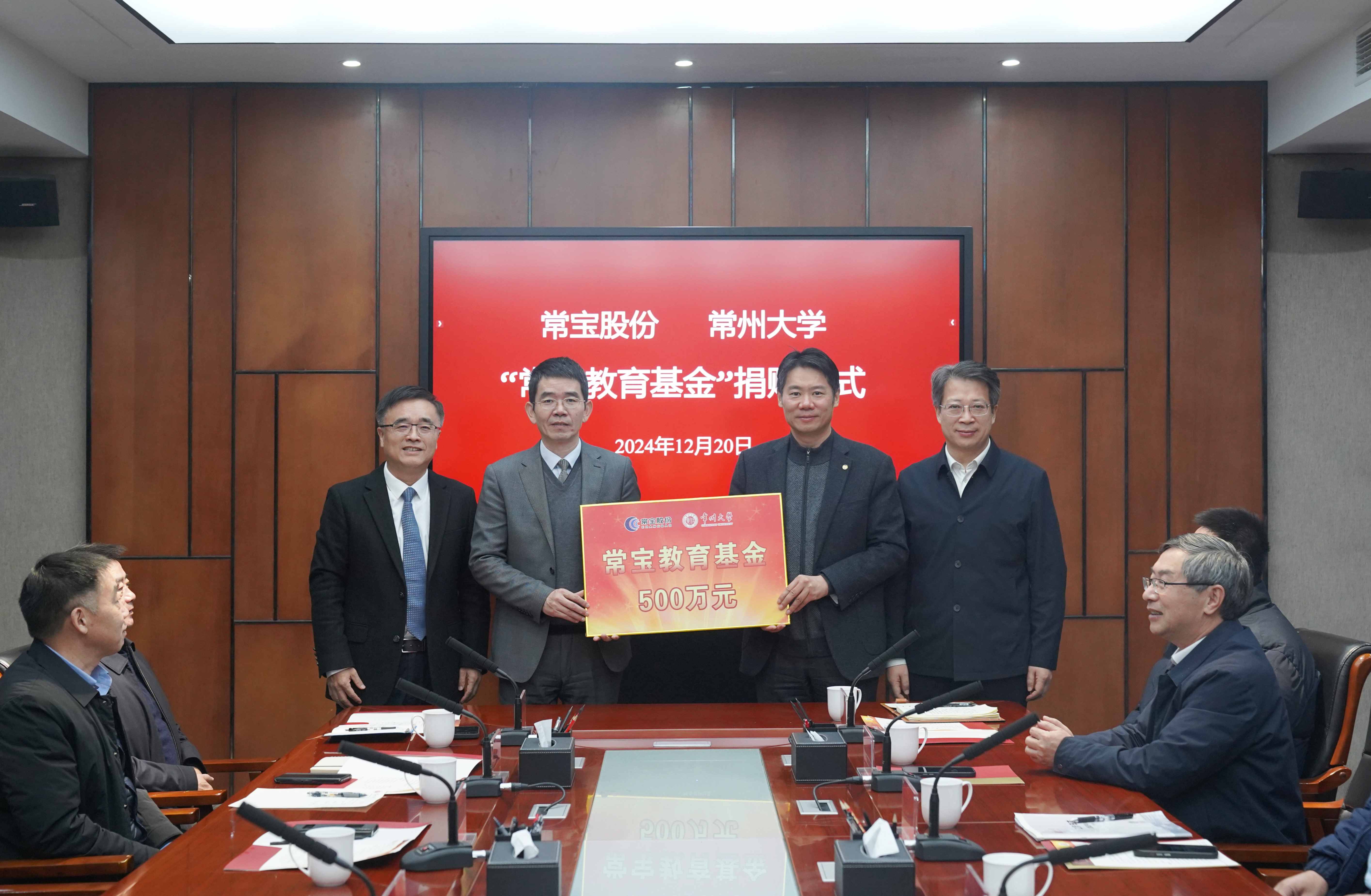 12月20日上午,学校在科教城校区文正楼第二会议室举行 “常宝教育基金”捐赠仪式,江苏常宝钢管股份有限公司董事长曹坚、总经理韩巧林,常宝普莱森公司董事长曹强、总经理戴正春,常宝股份公司副总经理陈松林、工会主席丁伟,校党委书记徐守坤,党委副书记、校长陈海群出席捐赠仪式,常宝股份公司总经理办,以及我校党办校办、发展规划处、人事处、学生处、基金会秘书处负责人参加活动,陈海群主持捐赠仪式。