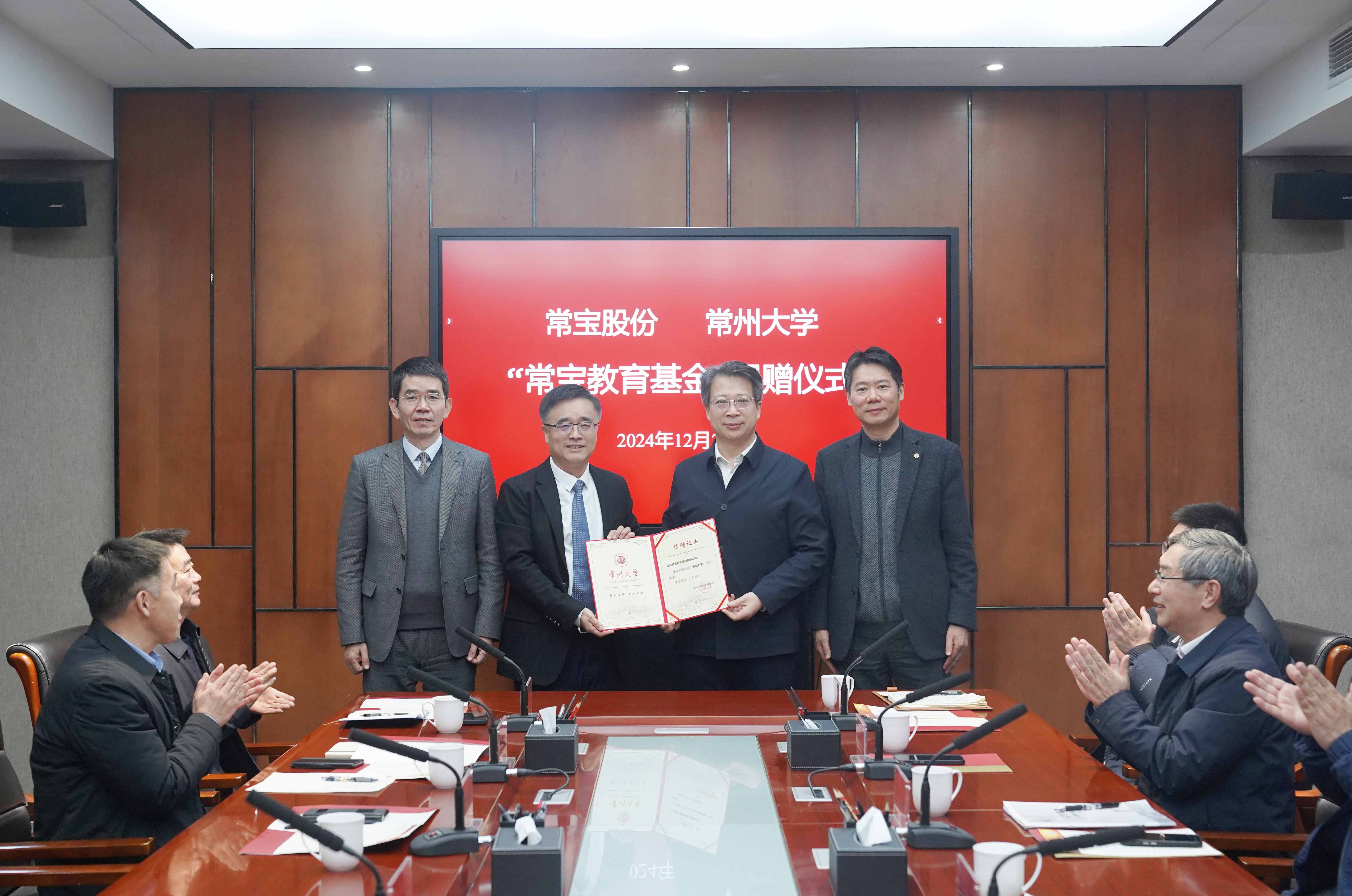 捐赠仪式上,韩巧林、陈海群代表双方进行“常宝教育基金”捐赠交接,徐守坤向曹坚颁发了捐赠证书。(通讯员/石晨迪 审核/田轶 编辑/孙悦)