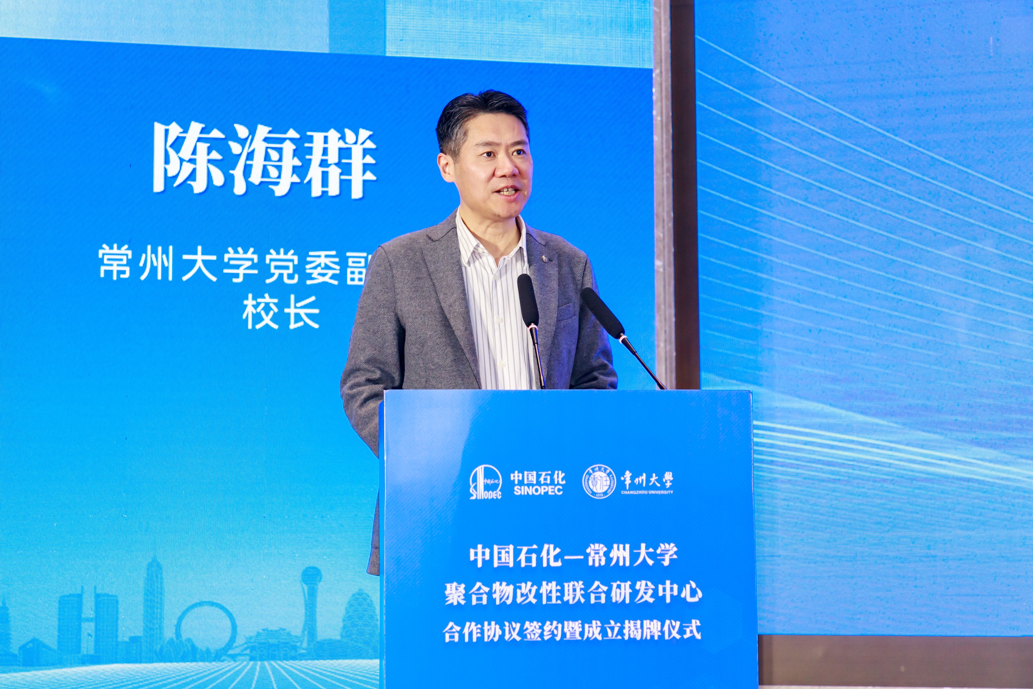 陈海群对长期以来关心支持常州大学发展的中国石化和常州市领导们表示衷心的感谢。他指出,此次联合研发中心能够落地,离不开“天时”“地利”“人和”。“天时”方面,顺应了国家战略性新兴产业布局发展,国家给予了高度重视和政策支持;“地利”方面,常州正在推动新能源之都全方位崛起,具备了良好的产业基础和区位优势;“人和”方面,中国石化与常州大学在学科交流、科技创新、人才培养方面有着深厚的合作基础,始终携手共赢共进。此次联合研发中心的成立,将进一步推动科技创新和产业创新深度融合,为中国石化和常州市高质量发展贡献科技力量。