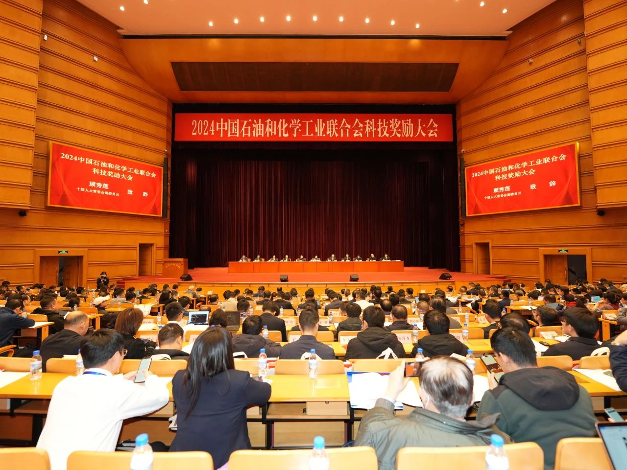2024年12月30日,2024中国石油和化学工业联合会科技奖励大会在北京会议中心召开。第十届全国人大常委会副委员长顾秀莲,中国石油和化学工业联合会党委书记李云鹏,中国工程院周守为院士、刘中民院士、张立群院士、孙金声院士,中国科学院段雪院士、黄维院士,中国石油和化学工业联合会党委副书记、副会长傅向升,副会长兼秘书长赵俊贵,副会长李彬,党委常委、副秘书长胡迁林,党委常委、副秘书长庞广廉等领导、嘉宾出席会议。来自全国重点石油和化工行业企事业单位、科研院所及新闻媒体的400余名代表参加了会议。