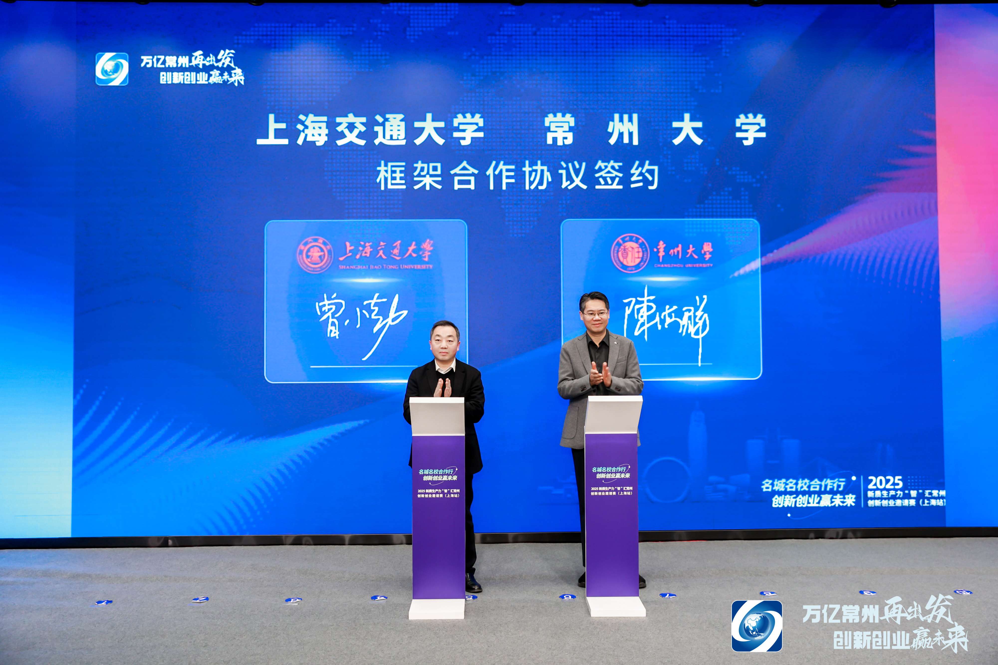 2月21日,2025“名城名校合作行 创新创业赢未来”暨新质生产力“智”汇常州创新创业邀请赛(上海站)活动在上海交通大学举行。作为活动的重要组成部分,上海交通大学与常州大学举行校际合作签约。