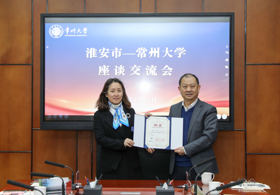 姜洪洋充分肯定学校历年派出的科技镇长团成员的工作实绩,感谢学校对淮安高质量发展的支持,希望学校继续选派更多优秀人才至淮安,并为淮安市化工和新材料专家智库代表颁发聘书。