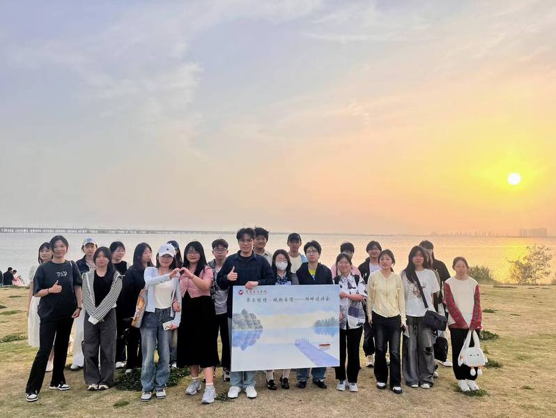 5月7日下午,由周有光文学院与武进区西湖街道联合主办的“草木缘情·观物自得——湖畔读诗会”在西太湖国际露营岛诗意启幕。西湖街道党工委委员周婷、周有光文学院党总支书记焦洁庆、参加活动,文艺学与外国文学教研室教师朱明明、古代文学教研室教师孙慧琦应邀担任分享嘉宾。西湖街道阅读社、有光文学社及雅確书屋读书会成员围坐湖畔,共同感受跨越时空的诗意。汉语241班俞玥同学主持活动。