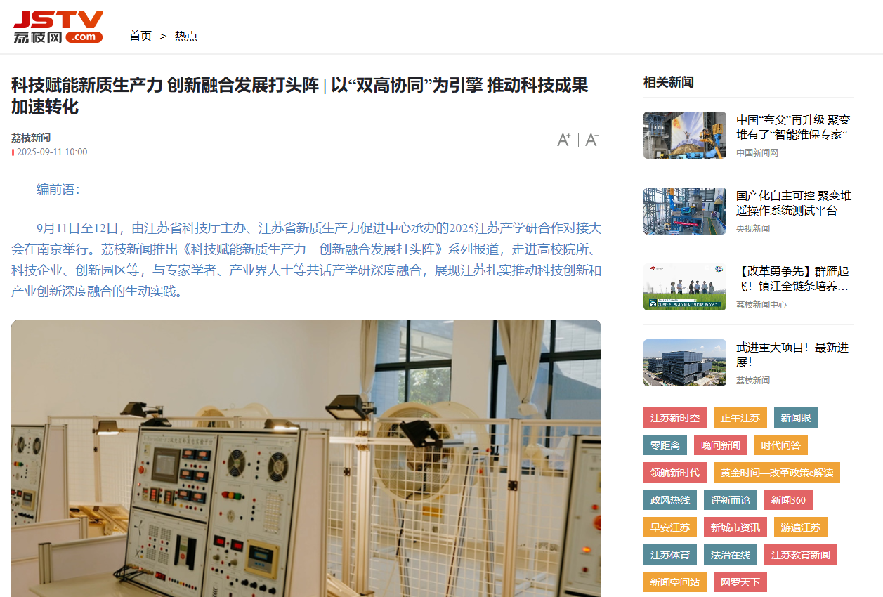 9月11日至12日,由江苏省科技厅主办、江苏省新质生产力促进中心承办的2025江苏产学研合作对接大会在南京举行。荔枝新闻推出《科技赋能新质生产力 创新融合发展打头阵》系列报道,走进高校院所、科技企业、创新园区等,与专家学者、产业界人士等共话产学研深度融合,展现江苏扎实推动科技创新和产业创新深度融合的生动实践。