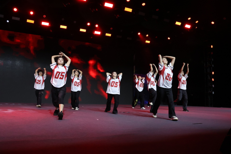 伴随着音乐《Borderless Beats》的欢快旋律,海外留学生为我们带来了由世界鼓乐与电子音乐创新融合的视听盛宴,诠释了人类命运共同体的核心。教工舞蹈队的舞蹈《舞韵龙城》,用舞蹈诠释“经师”与“人师”的统一,舞毕全场响起热烈掌声。大学生艺术团的说唱《洗牌》歌词充满节奏感,台上表演者们与观众热情互动,将会场气氛推向高潮。街舞联盟倾心演出的青春热舞《等你的回答》演绎了“青春等待与回应”的主题。
