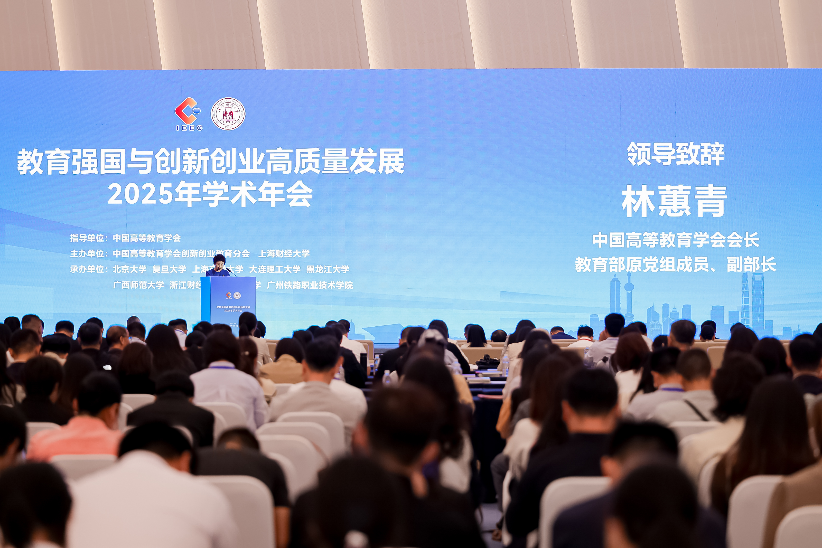 10月17日-19日,由中国高等教育学会创新创业教育分会、上海财经大学主办,北京大学、复旦大学、上海交通大学、大连理工大学、浙江财经大学、广西师范大学、常州大学、黑龙江大学、广州铁路职业技术学院承办的中国高等教育学会创新创业教育分会第四届理事会换届大会暨“教育强国与创新创业高质量发展”2025年学术年会在上海举行。中国高等教育学会会长、教育部原党组成员、副部长林蕙青出席大会并讲话。校党委常委、副校长李忠玉受邀参会,并当选为分会第四届理事会副理事长。