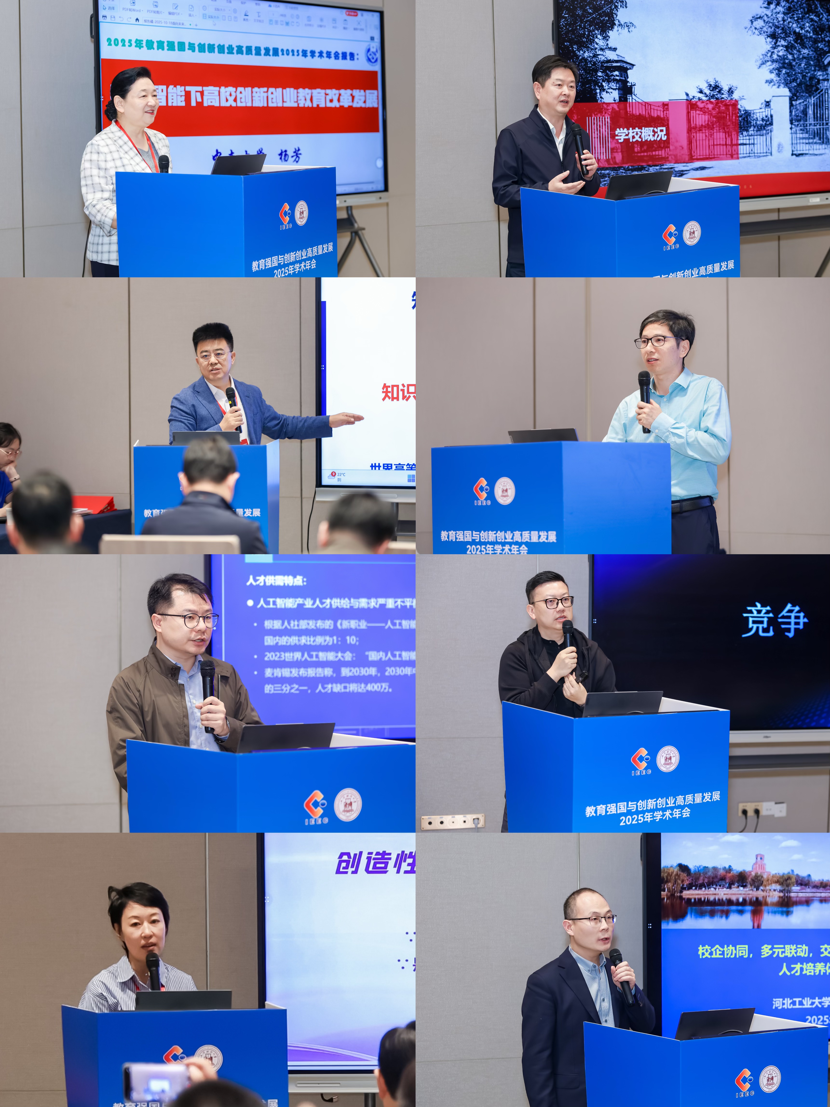 与会嘉宾从人才培养、成果转化、高校探索等维度,分享了产教融合赋能双创教育的实践经验与前沿思考。中国高等教育学会创新创业教育分会副理事长、中南大学国家创新创业示范基地主任杨芳作《数字智能下高校创新创业教育改革发展》报告,上海理工大学原党委副书记、教育部高等学校创新创业教育指导委员会委员孙跃东作《立足专业、面向产业、融入创新创业——上海理工大学工程创新人才培养的探索与实践》报告,湖南信息学院党委副书记、校长张福利作《AI时代高等教育发展的守正与创新》报告,长三角国家技术创新中心管委会委员、上海长三角技术创新研究院院长助理肖功海作《践行“行本教育”理念,培养卓越工程人才》报告,中国人民大学劳动人事学院党委书记陈姚作《人工智能行业人才培养产教融合的思考》报告,中钢高科投资管理有限公司副总经理金摇光作《人工智能下的创新涌现》报告,四川大学创新创业工作领导小组办公室专职副主任吴迪作《从国家战略到学生成长,四链融合数字化》报告,河北工业大学机械工程学院副院长王刚作《校企协同,多元联动,交叉赋能:面向新工科的汽车类人才培养体系创新与实践》报告。