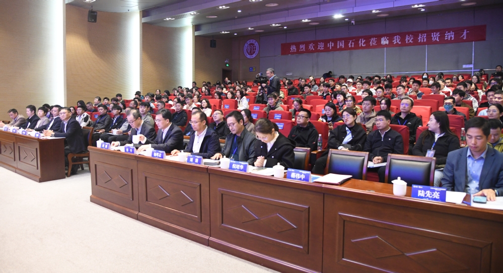中国石化招聘宣讲人就参会单位的招聘需求、福利待遇及流程作了详细说明。现场播放了中国石化宣传片,生动展示了企业文化和职业发展平台。