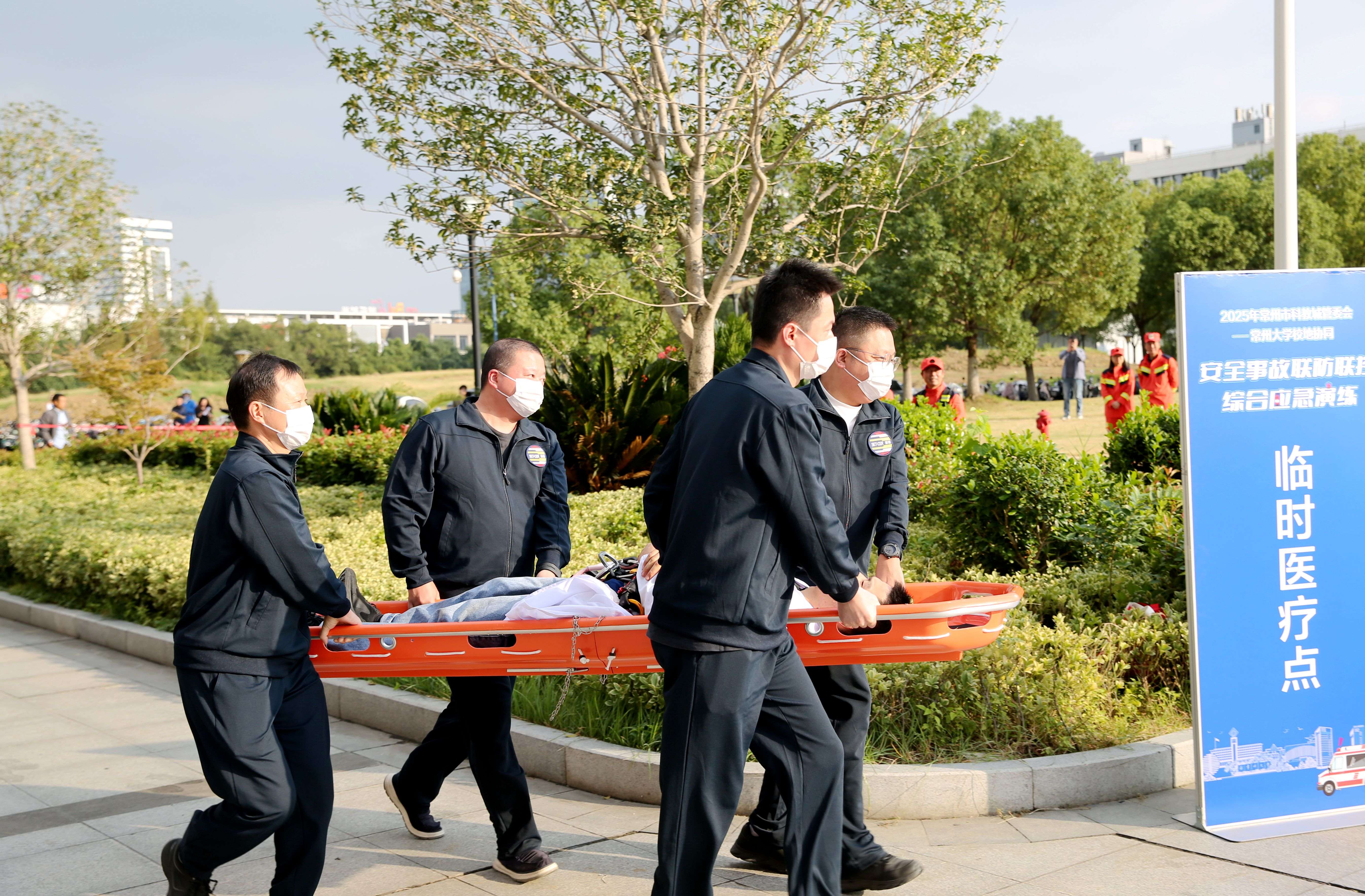 为全面提升应对安全事故的快速响应、协同作战和高效处置能力,保障师生员工生命财产安全,10月24日下午,我校与常州市科教城管委会在科教城校区测试实验楼联合开展2025年校地协同安全事故联防联控综合应急演练。常州市政协副主席、科教城管委会主任祝正庆,常州大学党委常委、副校长李亚飞担任演练总指挥,常州市武进区消防救援大队为本次演练提供消防灭火支援。校地相关部门及师生代表共300余人参与和观摩演练。