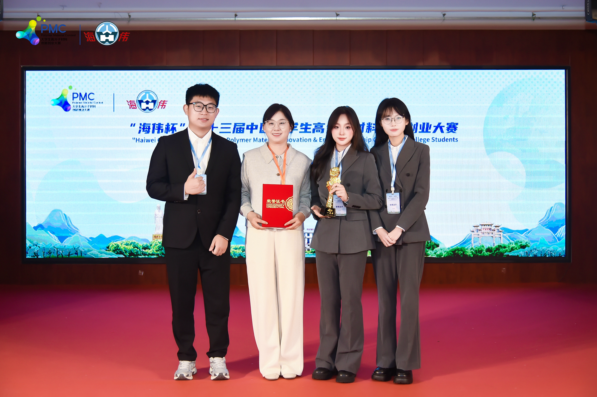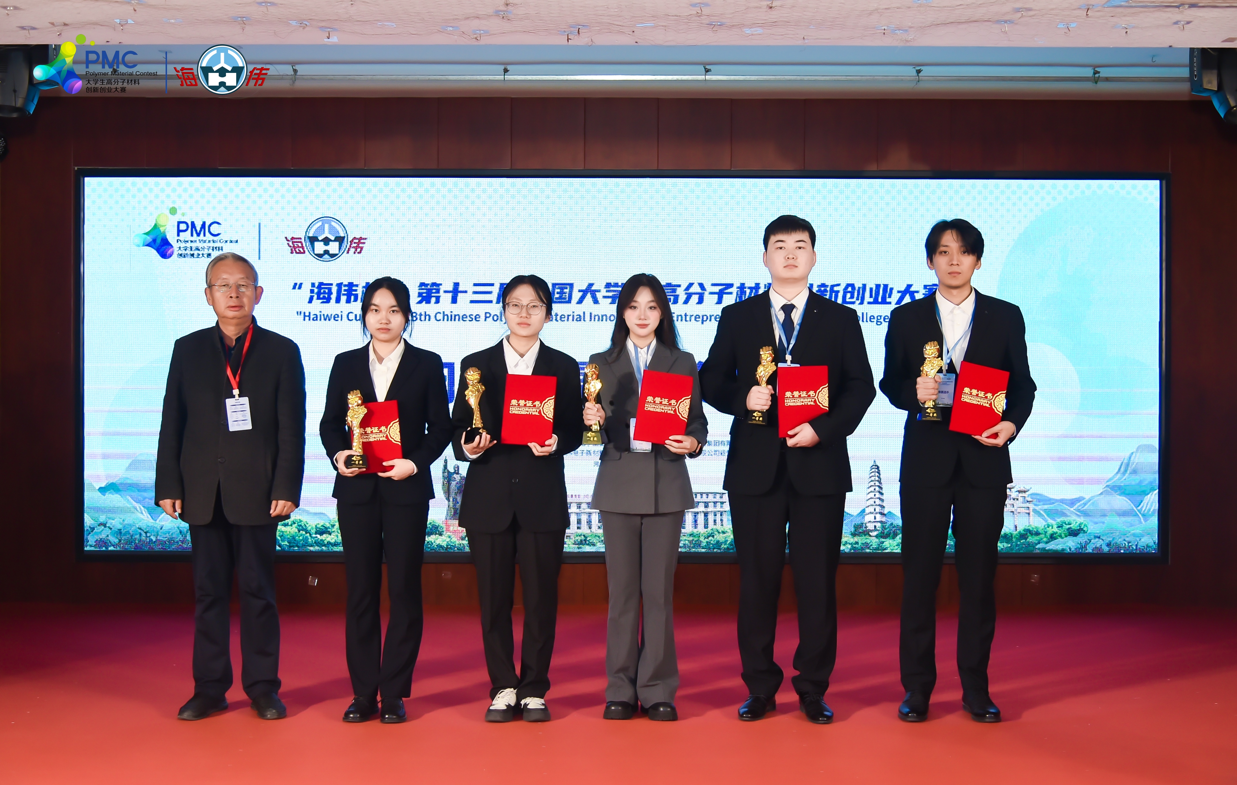 近日,由中国石油和化学工业联合会、中国化工教育协会及橡胶谷集团有限公司联合主办,河北海伟电子新材料科技股份有限公司与橡胶谷集团有限公司运营中心联合承办的 “海伟杯” 第十三届中国大学生高分子材料创新创业大赛全国决赛在河北省衡水市景州县落下帷幕。由我校石油化工学院林理伟、徐松老师指导,石油化工学院和环境科学与工程学院学生唐晨曦、华诗雨、周赛宇、刘兆祖、吴思宇联合申报项目《稀愈先锋——基于超分子包合技术的改性稀土复合材料伤口敷料研发》入围总决赛并在激烈角逐中荣获全国一等奖!