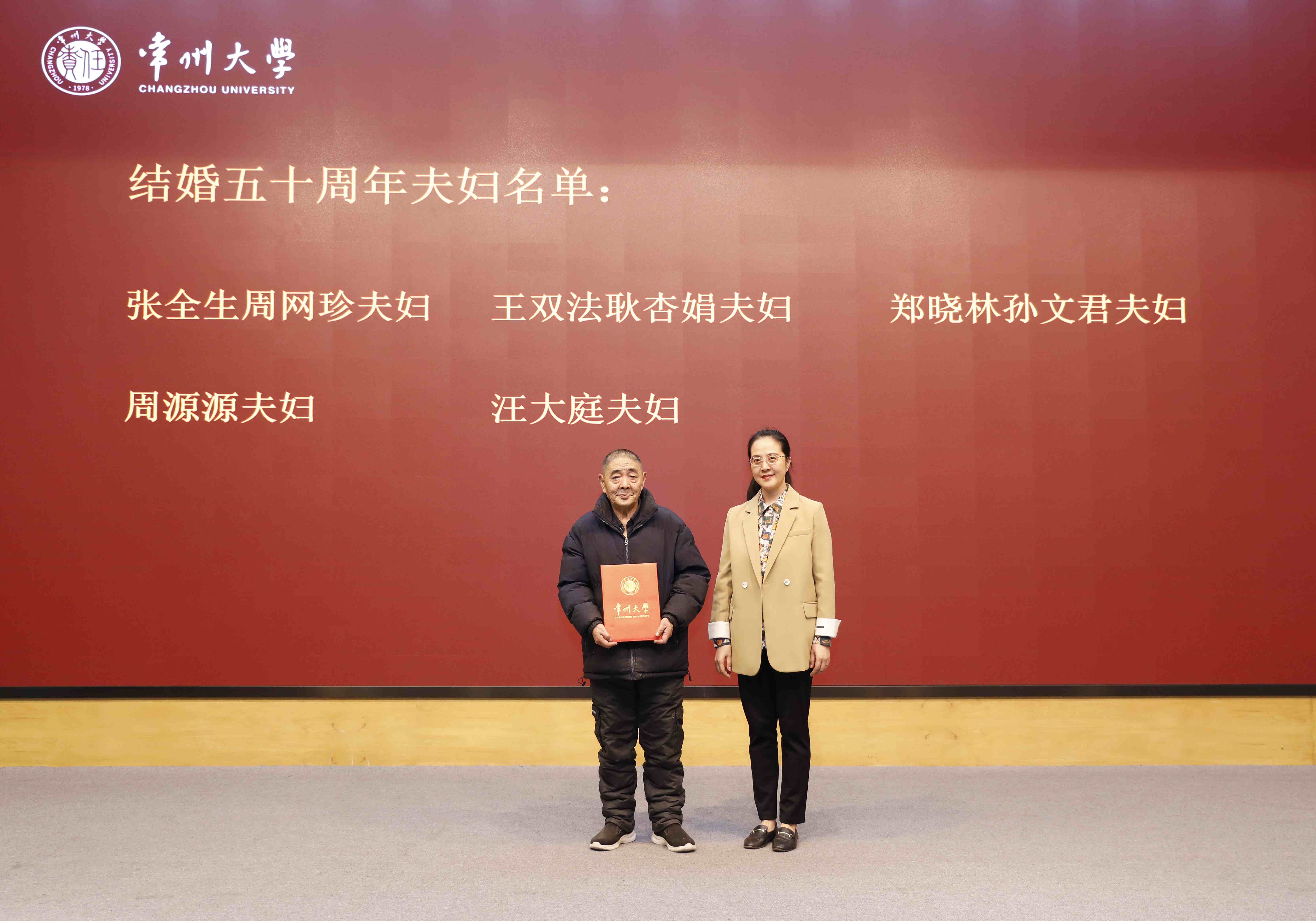 校领导为今年结婚30、40、50、60周年的离退休教职工夫妇送上祝福