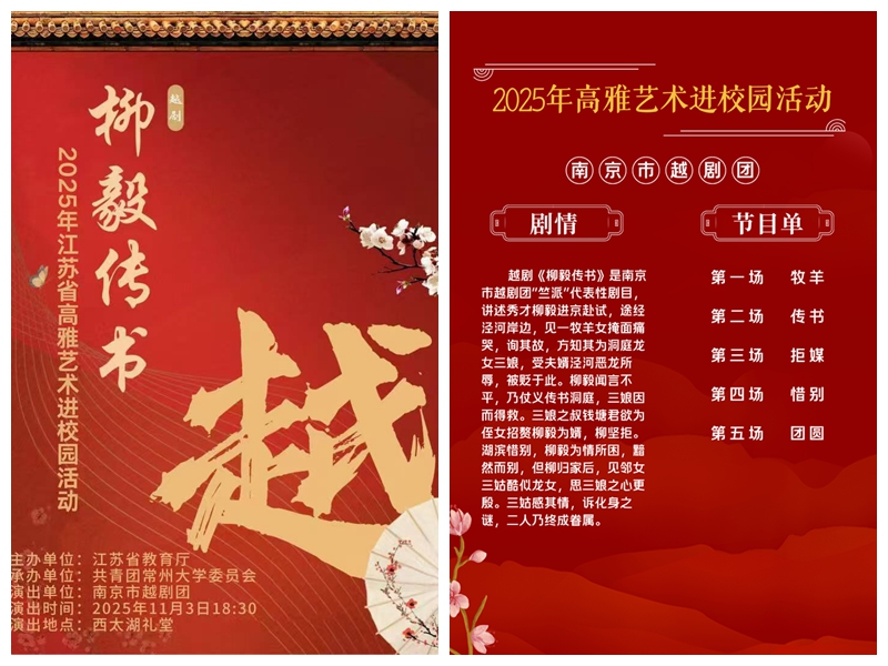 活动预告:高雅艺术进校园——南京市越剧团《柳毅传书》