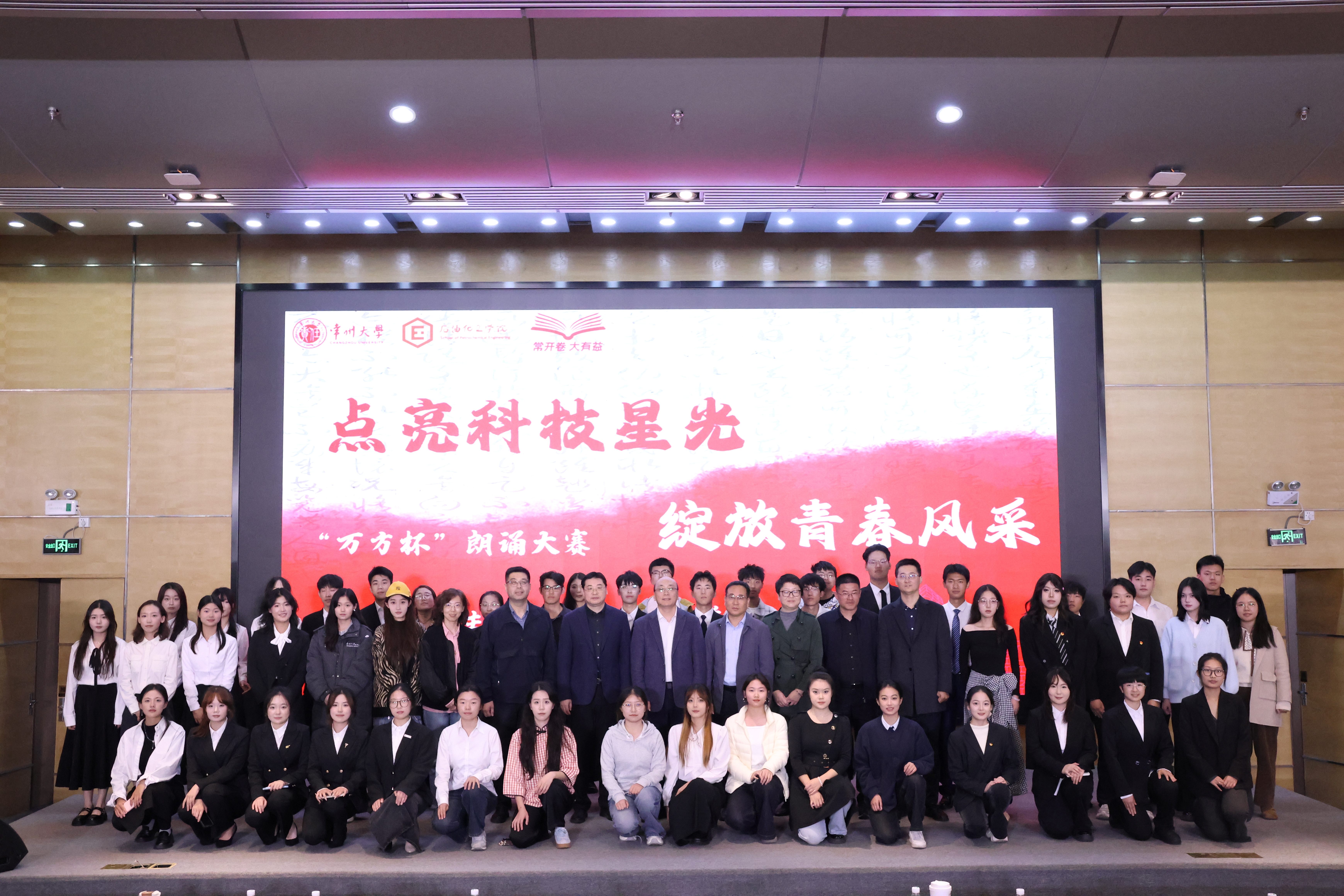11月14日下午,由图书馆、团委、学生处、工会联合主办,石油化工学院承办的常州大学第十五届读书节“万方杯”朗诵大赛决赛在科教城校区文彰楼报告厅落下帷幕。本次朗诵大赛是常开卷·大有益:常州大学第十五届读书节系列活动之一,以“点亮科技星光,绽放青春风采”为主题,探寻科技的创新之路,彰显青年的奋进担当。学生工作处、工会、石油化工学院、机械与轨道交通学院、瞿秋白政府管理学院、周有光文学院、图书馆、宣传部相关负责人出席大赛。