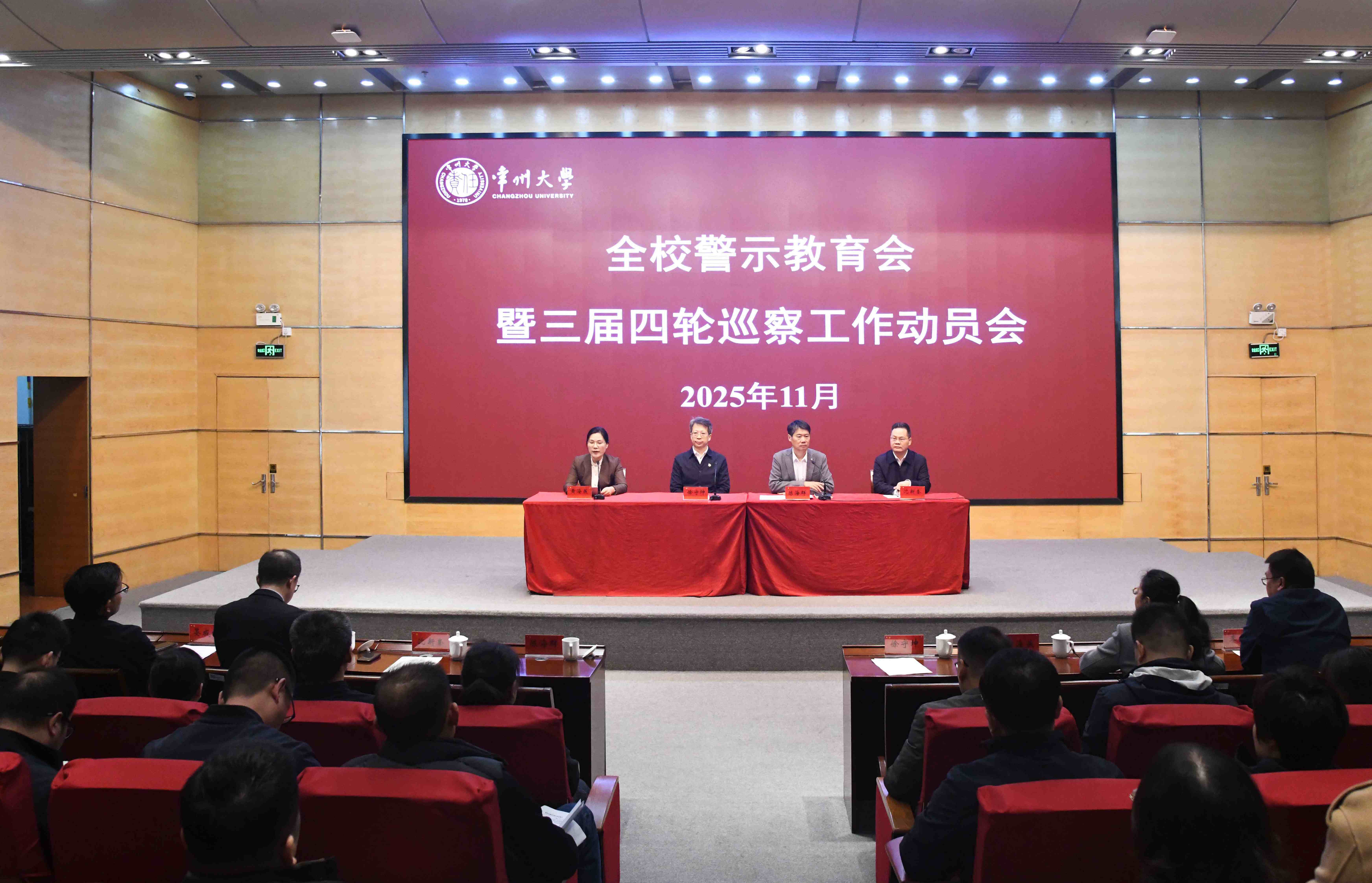 11月17日,全校警示教育会暨三届四轮巡察工作动员会在科教城校区文彰楼报告厅召开。校党委书记徐守坤出席会议并讲话,党委副书记、校长陈海群主持会议并讲话,党委副书记黄海燕宣读三届党委第四轮巡察授权任职及任务分工。校领导、党委委员、纪委委员、处级干部参加会议。