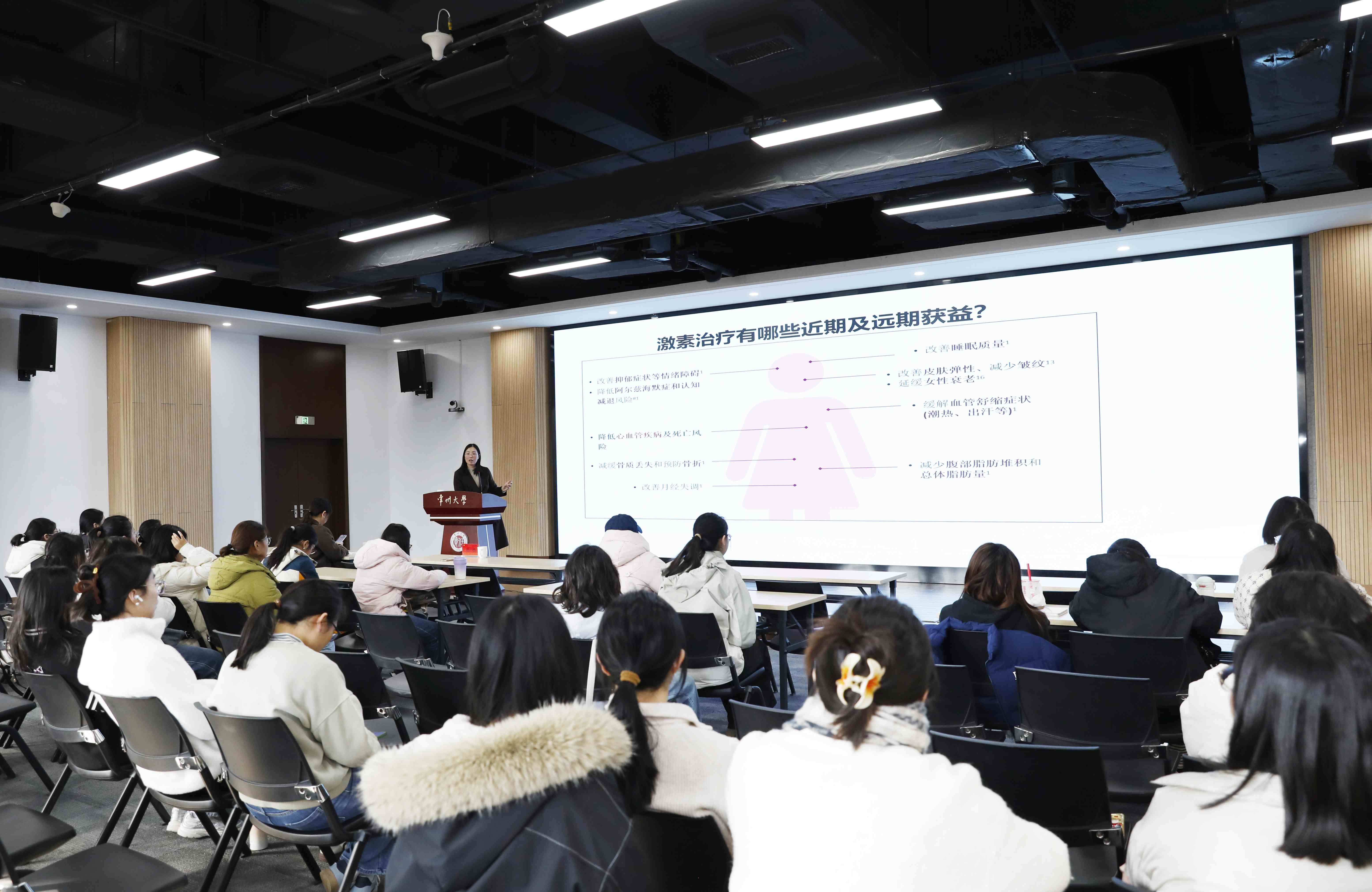 健康科普讲座由市妇幼保健院妇瘤一科医疗组组长、主任医师徐娟主讲。徐娟作“洞见身体内在规律:女性全生命周期激素变化下的主动保健与疾病预防”专题讲座,为在场师生带来了一场深入浅出、详实生动的健康知识普及课程。
