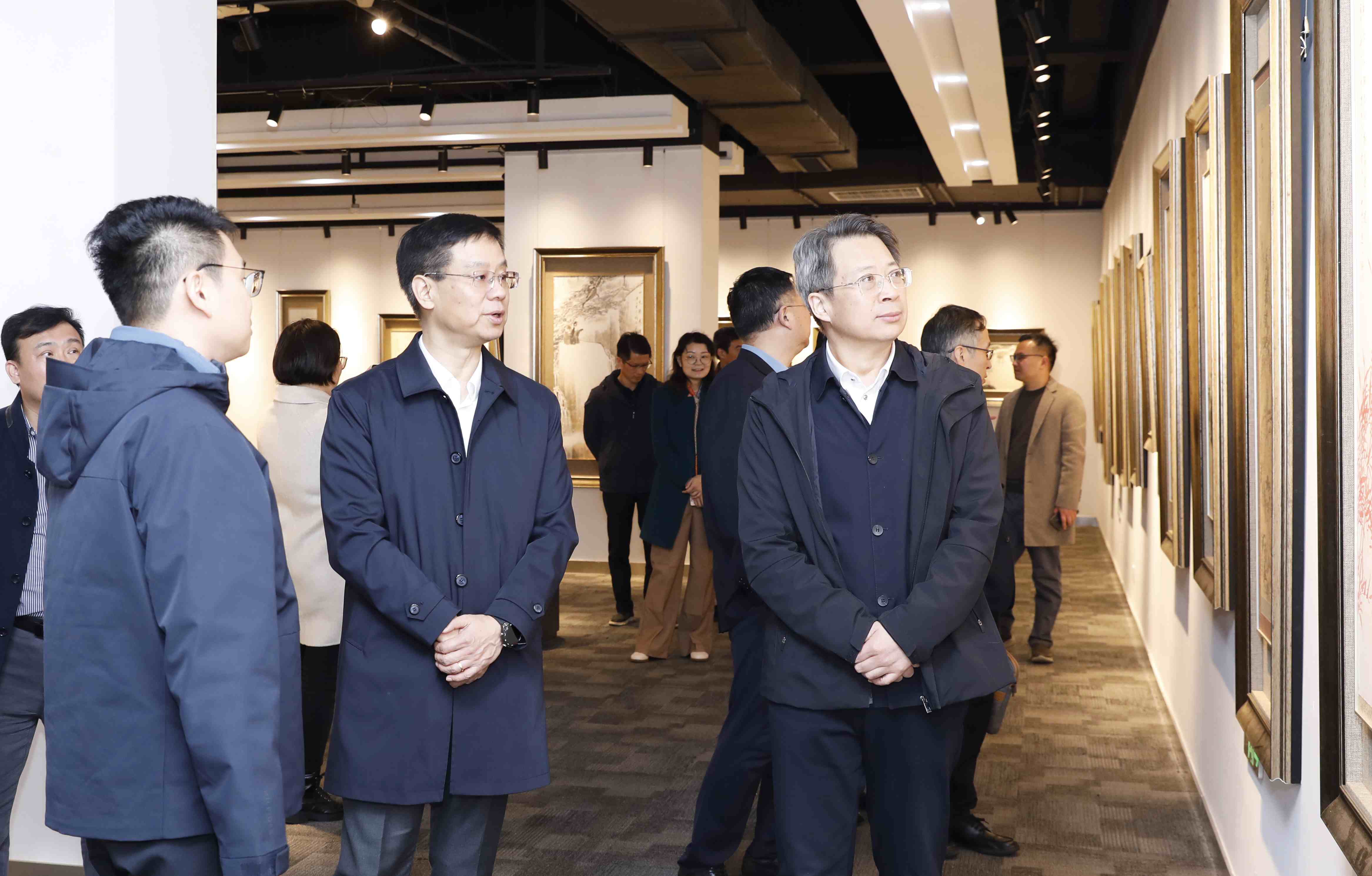 孙秀峰、刘志伟、张立莹、徐守坤等走访了科普讲座和义诊现场,并参观了校同心美育教育实践基地徐培晨美术馆。