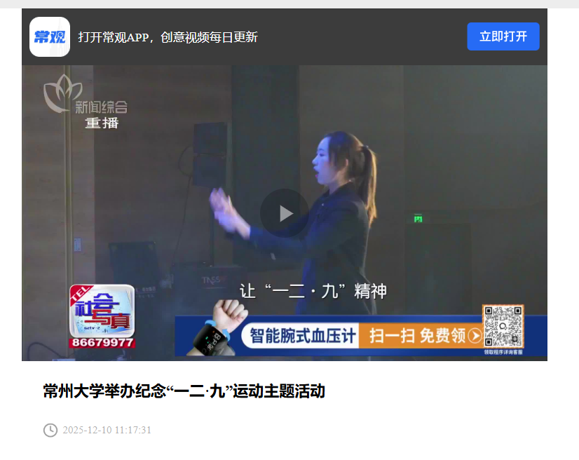 常州电视台:常州大学举办纪念“一二·九”运动主题活动