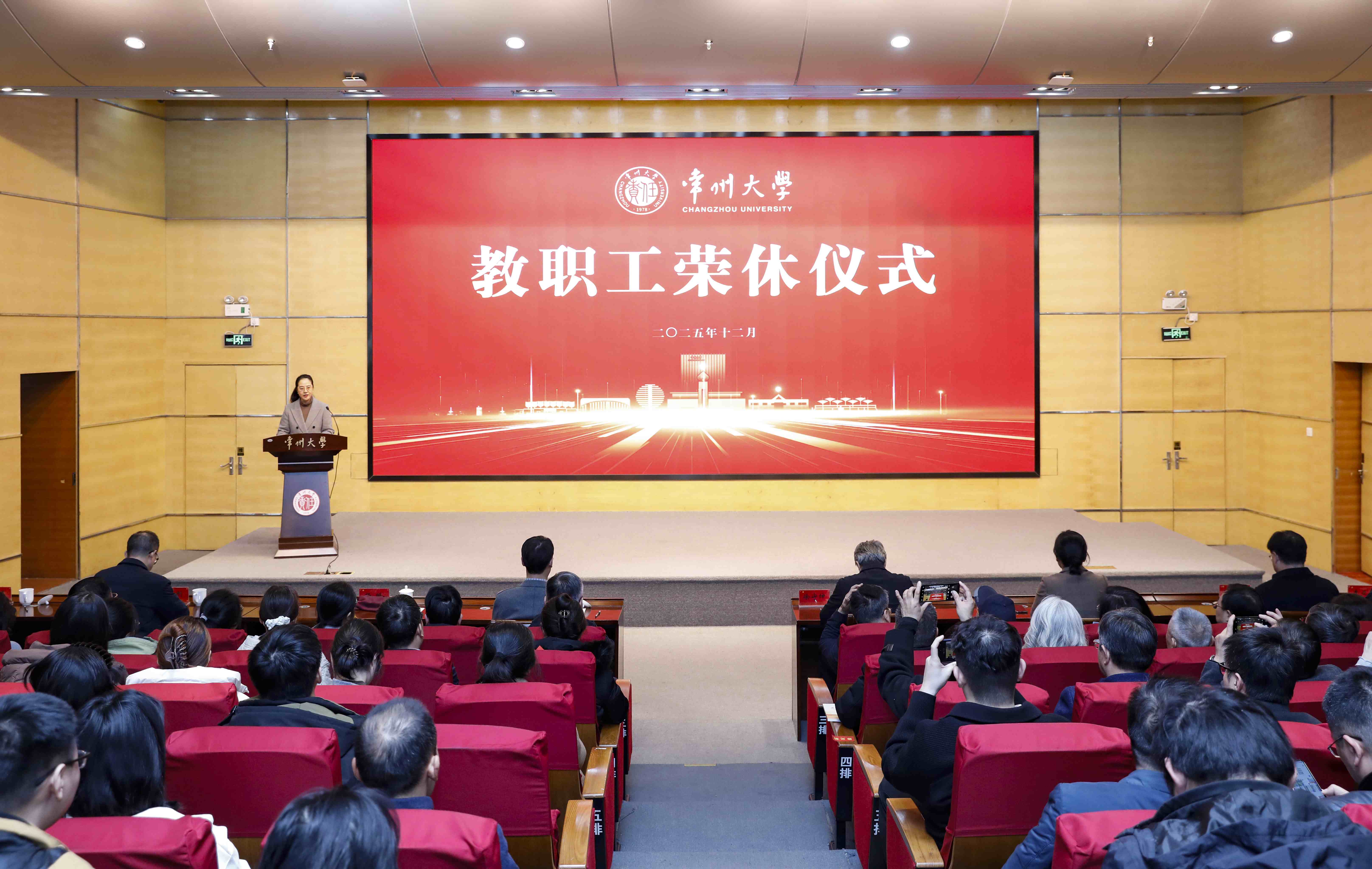 12月19日下午,学校在科教城校区文彰楼报告厅举行2025年常州大学教职工荣休仪式。校领导徐守坤、陈海群、黄海燕、杨琳、李忠玉、周刚、李亚飞、潘勇、吴洪宝出席会议。2025年度荣休教职工、相关职能部门、相关单位负责人、青年教职工代表及学生代表参加会议。杨琳主持会议。