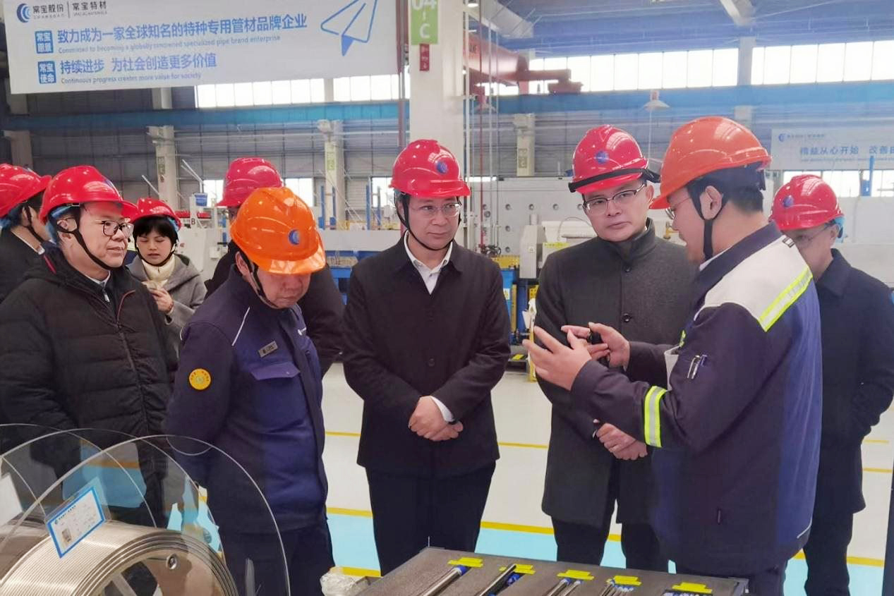 在江苏常宝钢管股份有限公司,调研组在企业技术专家陪同下深入生产一线,实地考察企业生产流程与管理模式,直观了解企业运营情况,围绕人才招聘、产教融合、科技创新等内容与企业方开展了深入交流。
