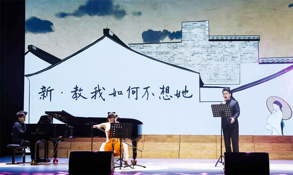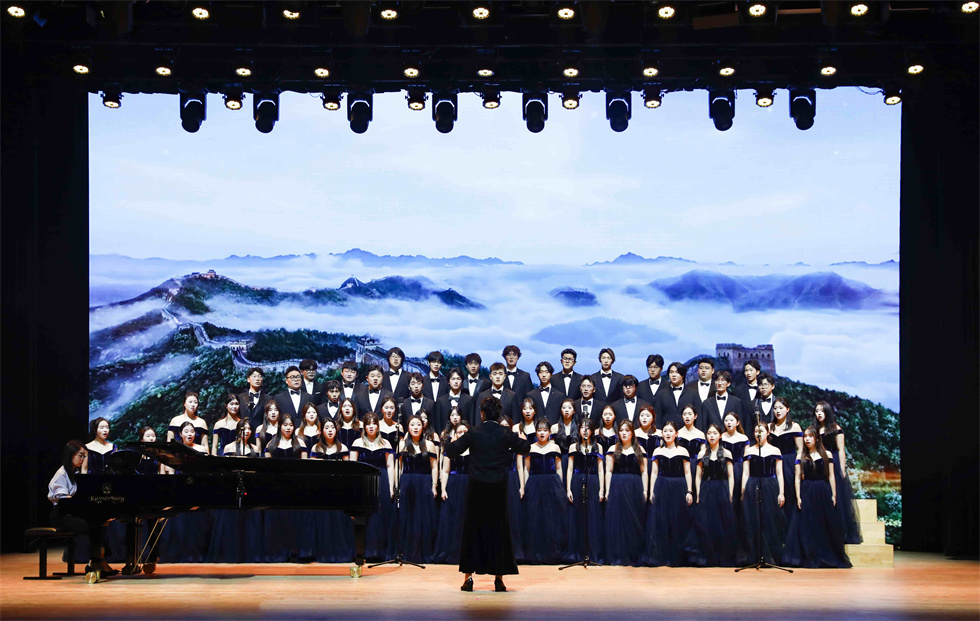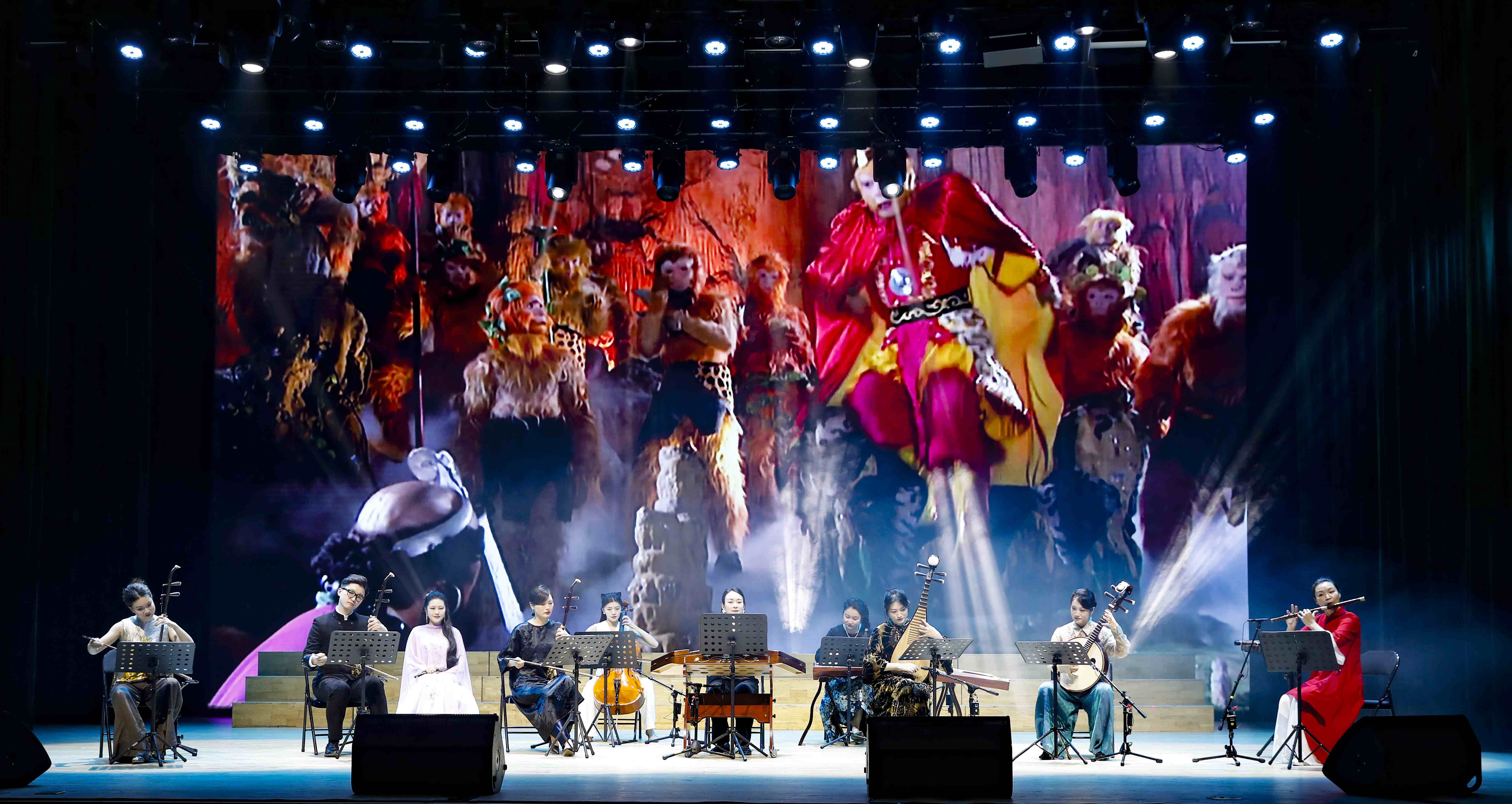 音乐会以“影音留芳,岁序新章”为主题,通过“烽火岁月”“港台留声”“春潮织梦”“国色流芳”和“时代放歌”等篇章的精彩演绎,带领观众穿越时空,重温经典影视作品中的动人旋律,展现了中国文艺创作在不同历史阶段的精神风貌。音乐会伊始,由民乐系教师带来的重奏《名著主题变奏》气势磅礴又欢快激昂,四大名著与民乐雅韵的浪漫邂逅,瞬间点燃全场观众的热情,《三国演义》的豪情、《水浒传》的侠义、《西游记》的奇幻与《红楼梦》的婉转一一呈现,在传统乐器的演绎下焕发新的艺术生命力。烽火岁月激荡英雄情怀,《弹起我心爱的土琵琶》《长城谣》《游击队之歌》《地道战》《英雄赞歌》等电影插曲联唱,铿锵有力的节奏和激昂豪迈的歌声饱含对英雄的深情礼赞,再现了革命战争年代的英勇与坚韧。港台留声流淌时代记忆,《刀剑如梦》《上海滩》《渡情》《铁血丹心》《万里长城永不倒》《在水一方》等经典旋律接连奏响,或江湖豪情,或柔情缱绻,或家国大义,在音符的流转中写就时代深处的欢愉与叹息。春潮织梦咏唱生活变迁,《新·教我如何不想她》《渴望》《篱笆墙的影子》《牡丹之歌》《少年壮志不言愁》《千万次的问》等歌曲轮番上演,以真挚浓郁的情感咏叹人间烟火,吟唱时代变迁下的心灵悸动,唤醒几代人共有的情感记忆,在悠扬音符间铺展开一幅幅生动的社会图景。群舞《掀起你的盖头来》欢快热烈,舞步轻盈,将现场气氛推向高潮,浓郁的民族风情扑面而来。国色流芳彰显文化自信,《女儿情》《枉凝眉》《滚滚长江东逝水》《少林少林》《向天再借五百年》《等待》《得民心者得天下》等经典曲目婉转悠扬、气势恢宏,将传统文化的深邃意境与艺术魅力展现得淋漓尽致,令人心驰神往。时代放歌凝聚中国精神,《如愿》《萱草花》《这世界有那么多人》《人世间》《天堂》《被遗忘的时光》《相思》《假如爱有天意》《东方为什么这么红》以深沉悠扬的旋律收束,将家国情怀与时代颂歌推向顶峰,音符跨越岁月,见证着不变的初心与前行的力量。音乐会在合唱《爱永在》《中国军魂》中落下帷幕。激昂的旋律响彻大厅,掌声经久不息。