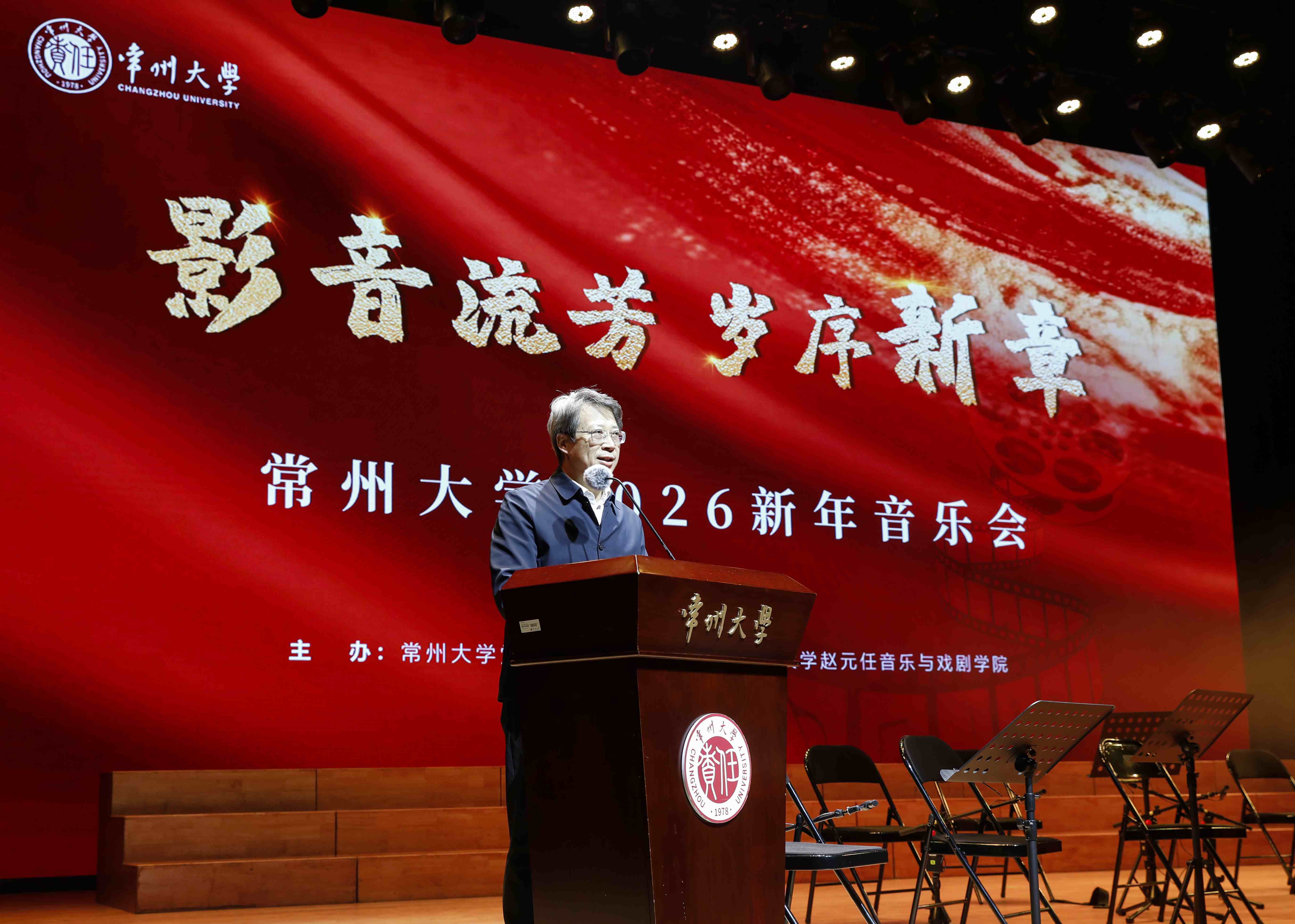 12月26日晚,“影音留芳,岁序新章”常州大学2026新年音乐会在西太湖校区立艺楼礼堂上演。常州市科教城党工委副书记王元兵,常州市儿童医院院长周栋,常州市第七人民医院院长张艳,常州市教科院附属高级中学校长陈小刚,常州市荆川小学党支部书记、校长张姝,常州清英外国语学校执行校长汤华燕,江苏汤姆集团董事长汤建华,常州市同创复合材料有限公司何越江,常州市总产业工会主席王一博,常州市教科院教研员王明霞等嘉宾受邀观看汇演。常州大学党委书记徐守坤,原党委书记陈群,党委常委、副校长杨琳,党委常委、副校长周刚,常州大学纪委书记、 派驻监察专员吴洪宝,原党委副书记兼纪委书记王凯全,原副校长王卫星,原副校长陆锦冲等领导出席音乐会。新年音乐会现场吸引了常大师生、校友和来自社会各界的音乐爱好者千余人观看,音乐会同时进行线上直播,观看人数破万。