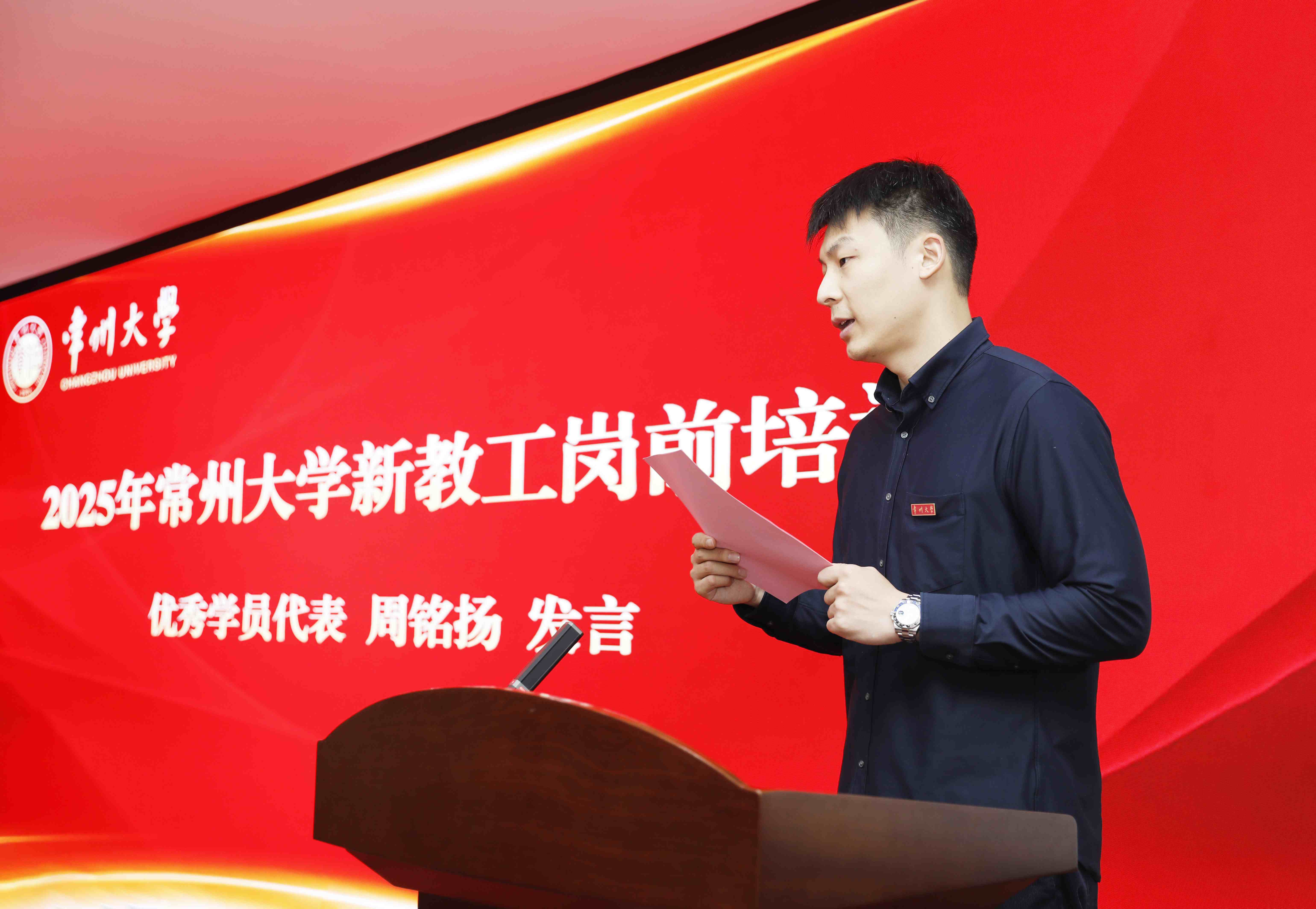 优秀学员代表周铭扬博士分享了自己对于“教师”这个新身份的深入思考,并表示要争做立德树人的践行者、教育创新的探索者、协同发展的贡献者,切实把所思所学转化为育人实效与工作实绩,为学校全面建成特色鲜明的高水平地方领军型大学不懈奋斗。