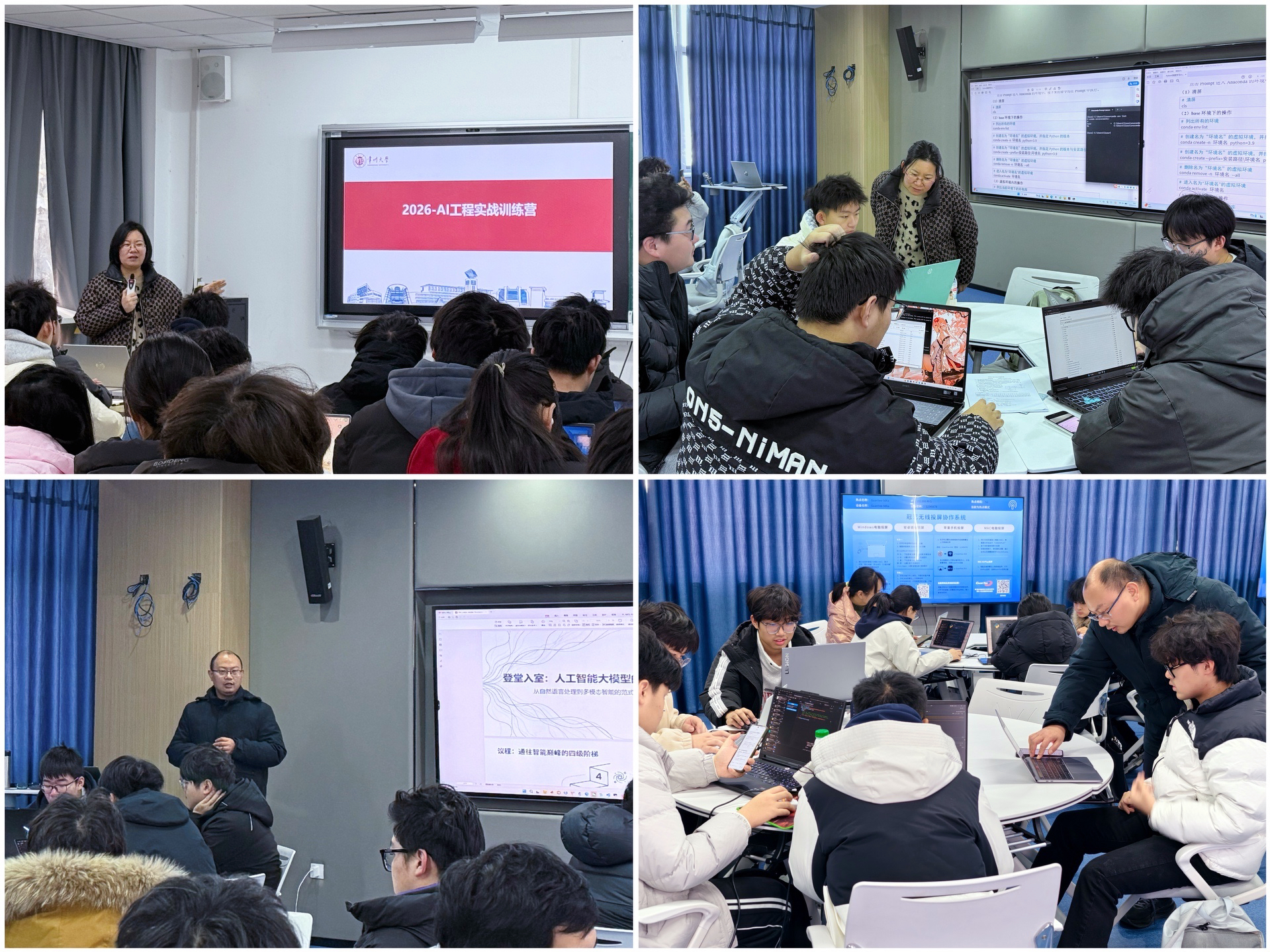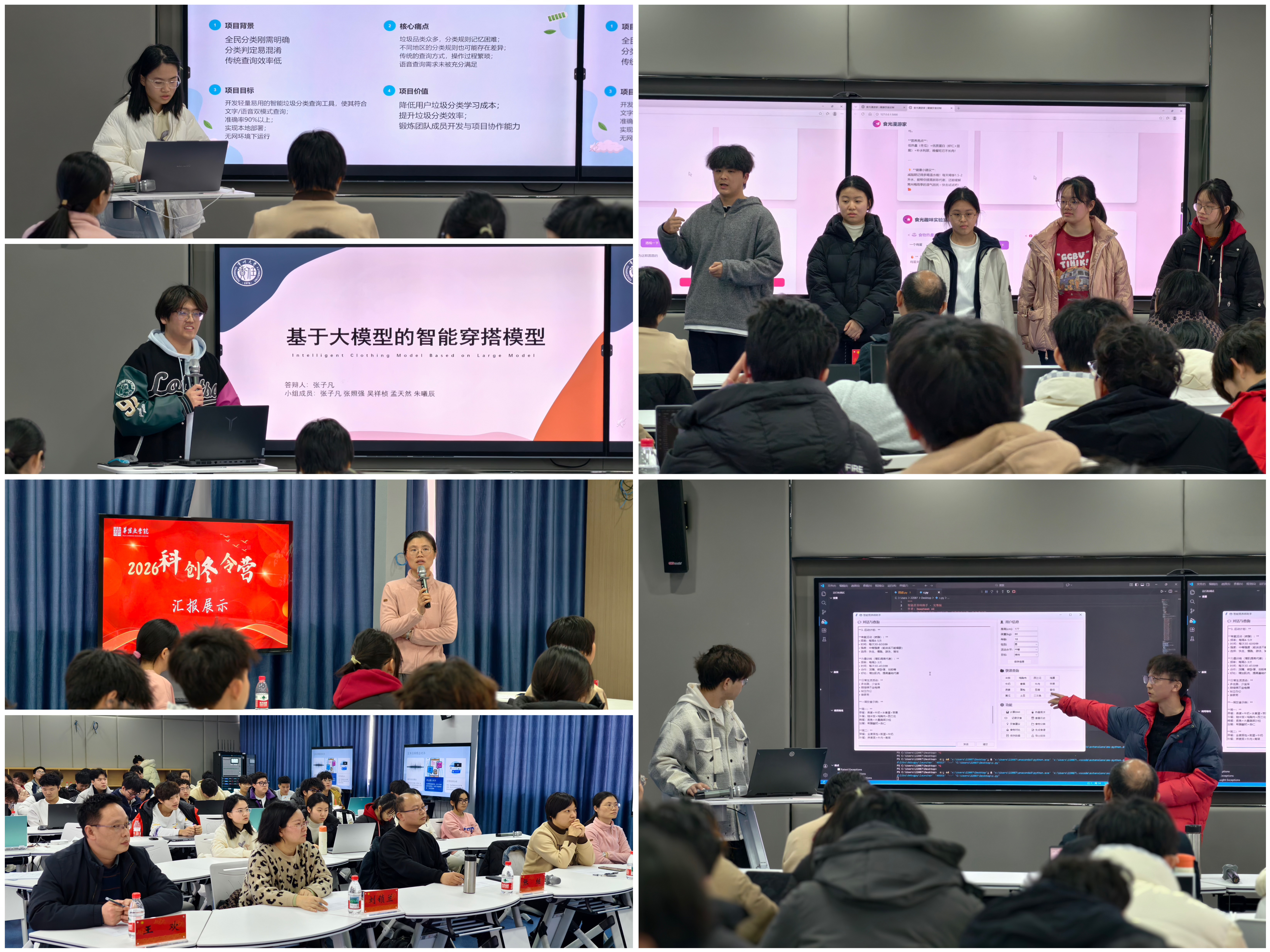 AI工程实战训练营则紧密对接人工智能发展趋势,围绕机器学习、大语言模型与AIGC技术应用等模块展开教学与实践。在跨学科导师指导下,学生系统学习技术方法,完成环境配置、数据分析与模型训练等基础实践,并通过跨年级组队方式围绕音乐生成、健康饮食、智能穿搭等具体场景,开展大模型应用项目设计。训练营贯彻“学练结合、以赛促学”的理念,通过案例学习、小组协作与项目答辩,引导学生在实践中理解人工智能技术脉络,完成了从场景分析、技术选型到方案展示的全过程体验,为后续深入专业学习和参加竞赛积累了宝贵经验。