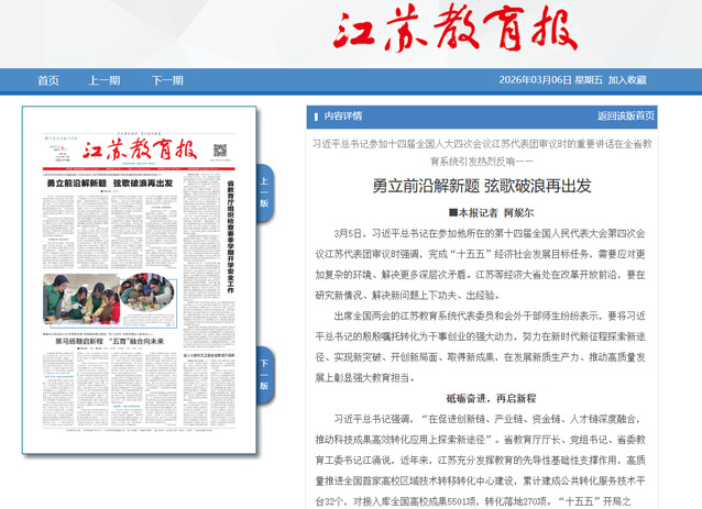 “发展新质生产力”“一体推进教育科技人才发展”……习近平总书记对江苏的殷切期盼,让我省教育系统干部师生倍感振奋。